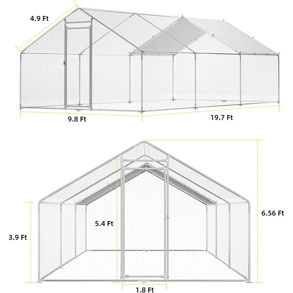 Large Metal Chicken Coop, With Waterproofing, For Rabbit, Duck, Chicken, Goose - 9.8 X 19.7 X 6.6 Ft