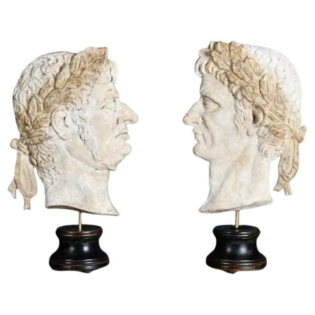 Large Pair Of Emile Pinedo Of Portrait Medallions On Marble Plaques