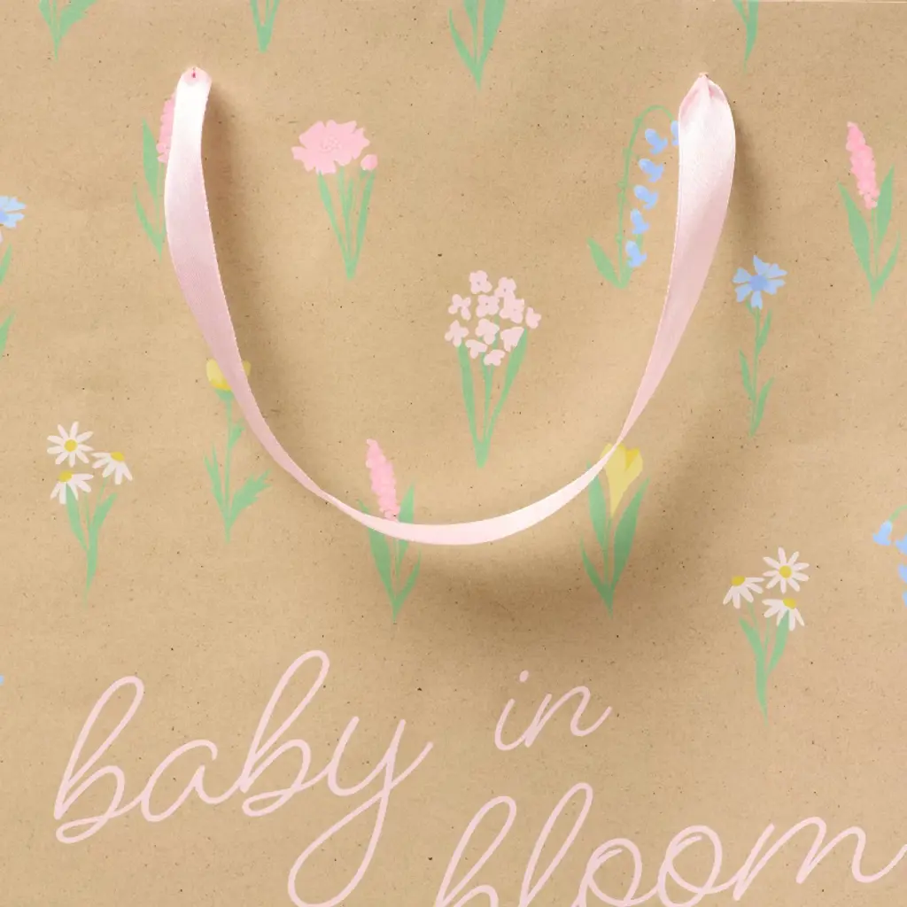 Large Square 'baby In Bloom' Floral Baby Shower Gift Bag Natural - Spritz™