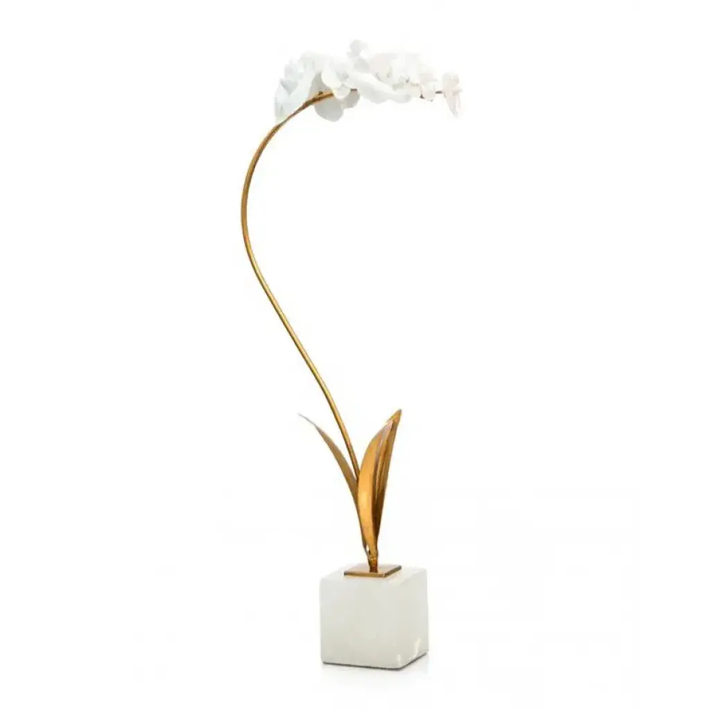 Iron/Ceramic. Antique Gold/White Glaze. White Ceramic Tulip On Antique Gold Painted Iron Stem Mounted On Clear Crystal.. 9W X 9D X 26H