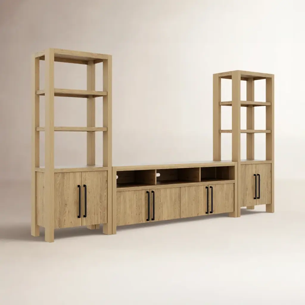 Davie presents a simple yet stylish design, meticulously crafted with attention to detail. The Pale Oak finish enhances the natural beauty and texture of the Pin Knotty Oak. Custom oversized bar pulls add to a sleek, contemporary feel. The clean lines, minimalistic aesthetic and warm finish harmoniously blend nature with urban living, creating an inviting ambiance for your home.