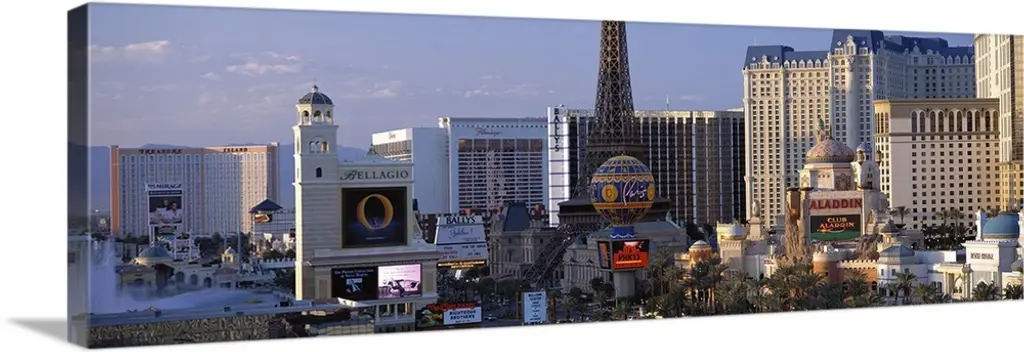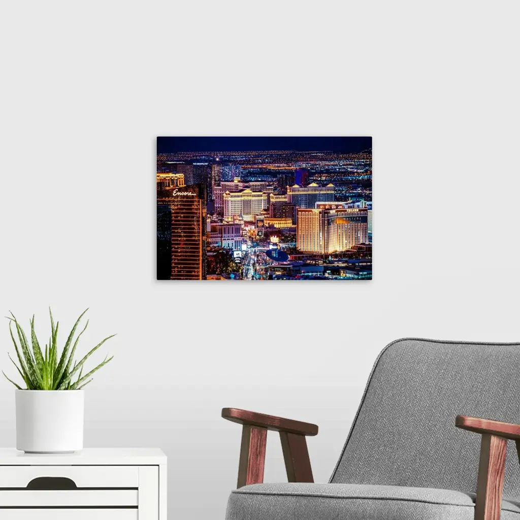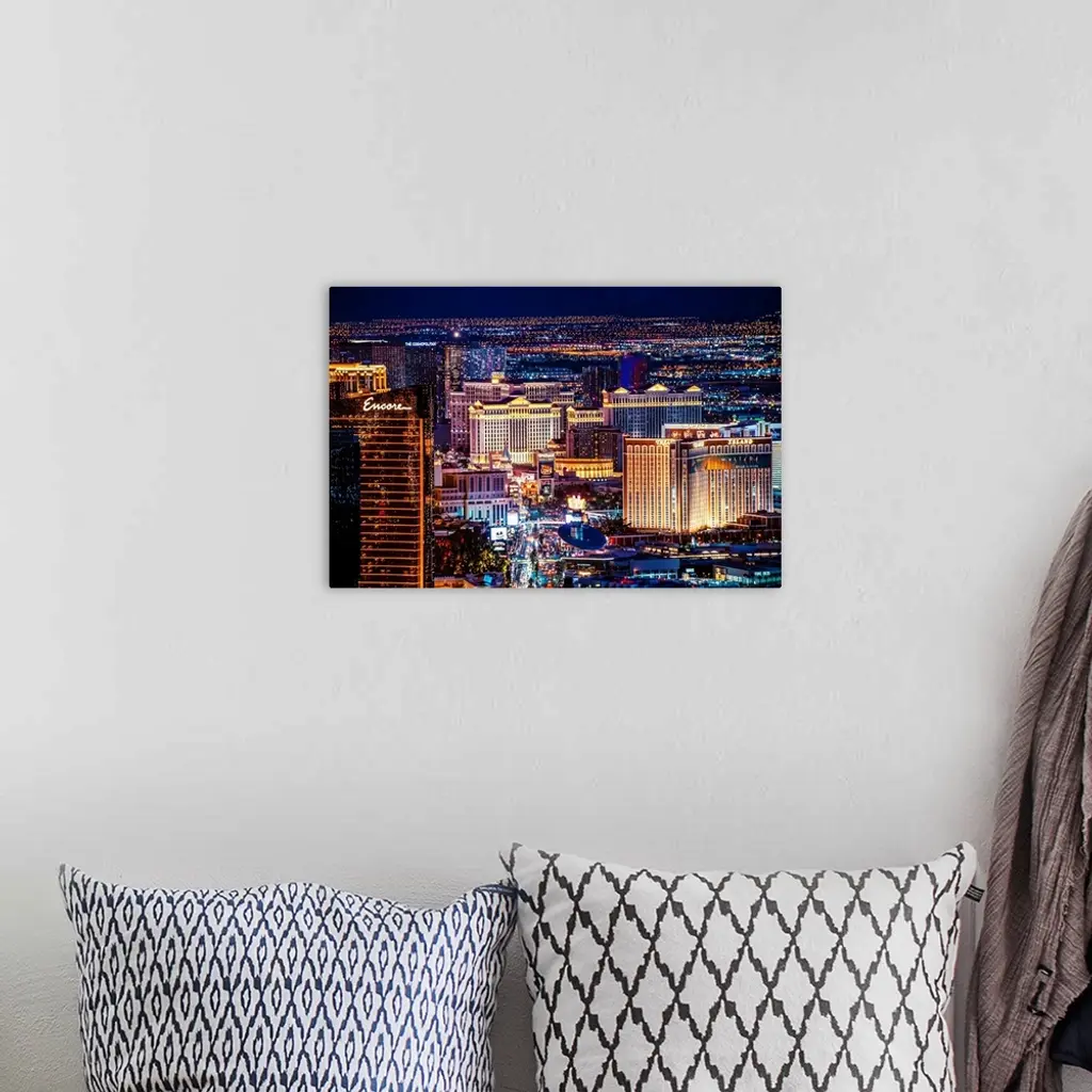 View of hotels and casinos near Las Vegas strip in Nevada at night.