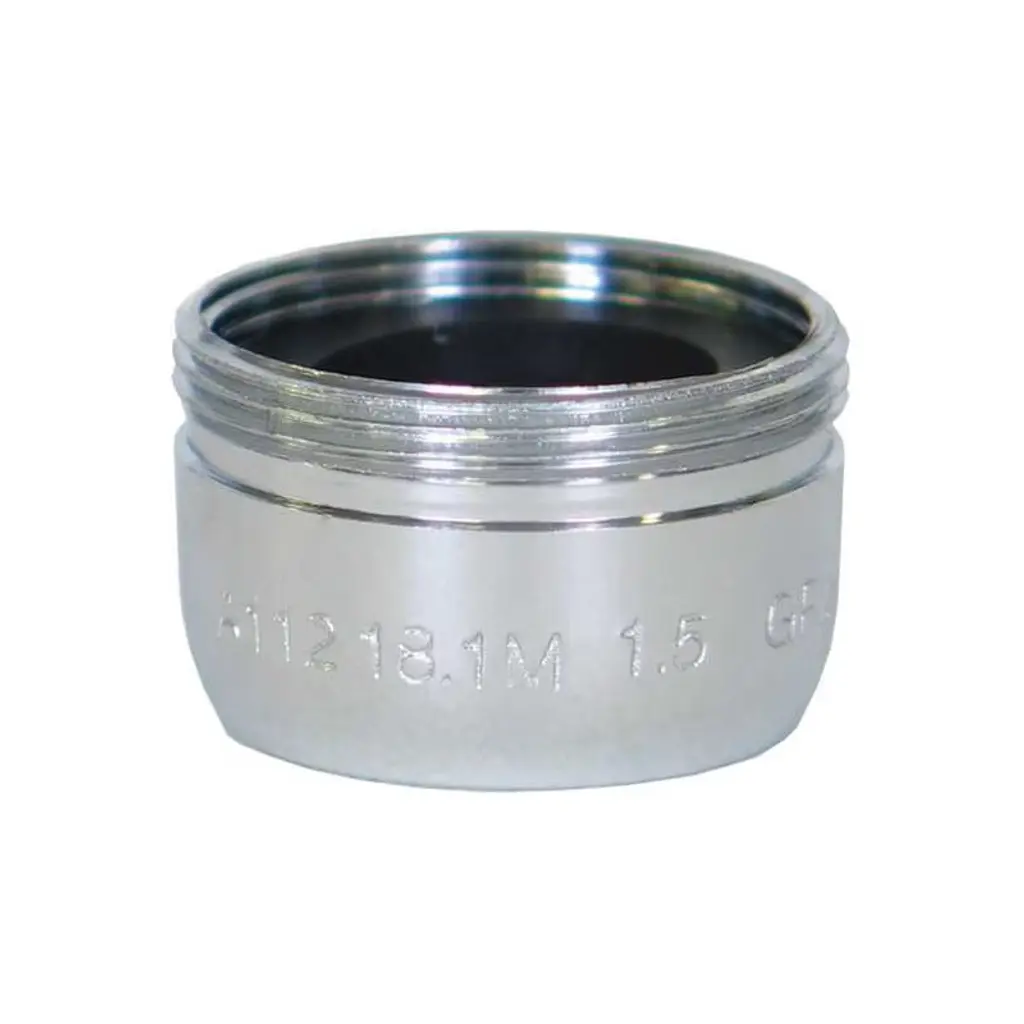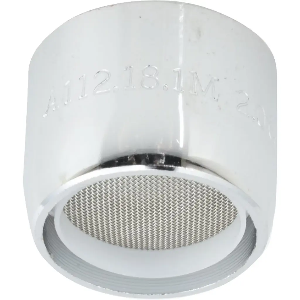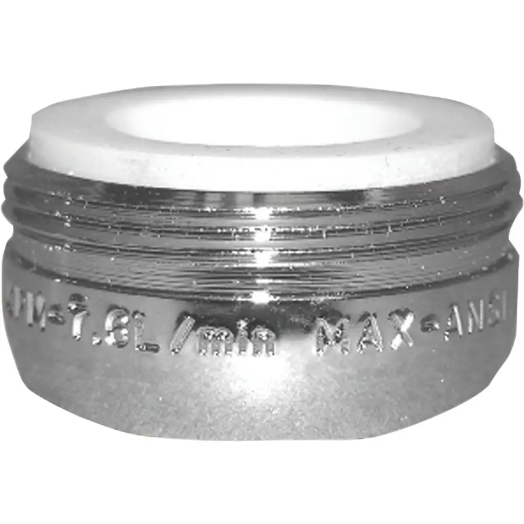 Chrome-plated brass. California flow rate compliant product for lavatory faucets, 1.2 GPM (gallons per minute) at 60 psi (pounds per square inch) and kitchen faucets, 1.8 GPM at 60 psi. 15/16" x 27 Male thread.