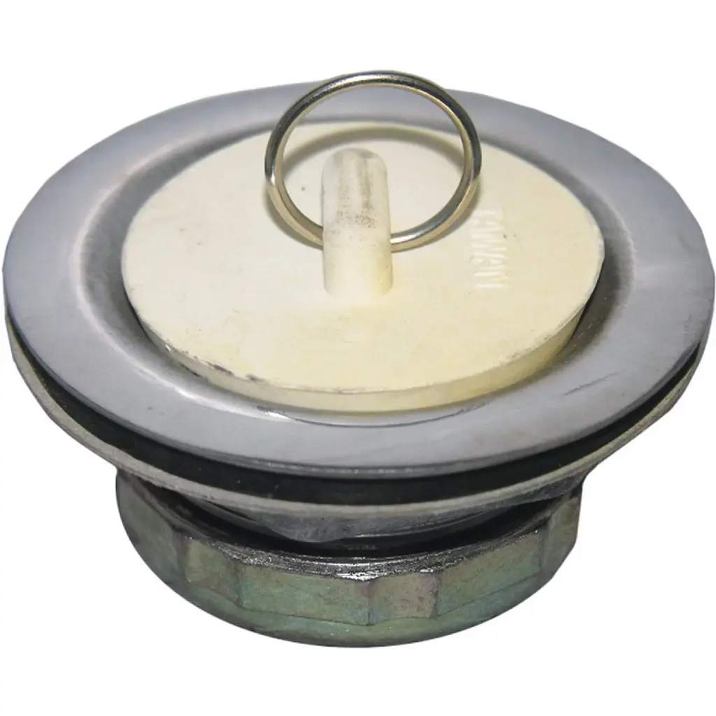 Chrome plated laundry tub strainer with stopper. For 2" opening with 1-1/2" connection. Sink or wash tub.