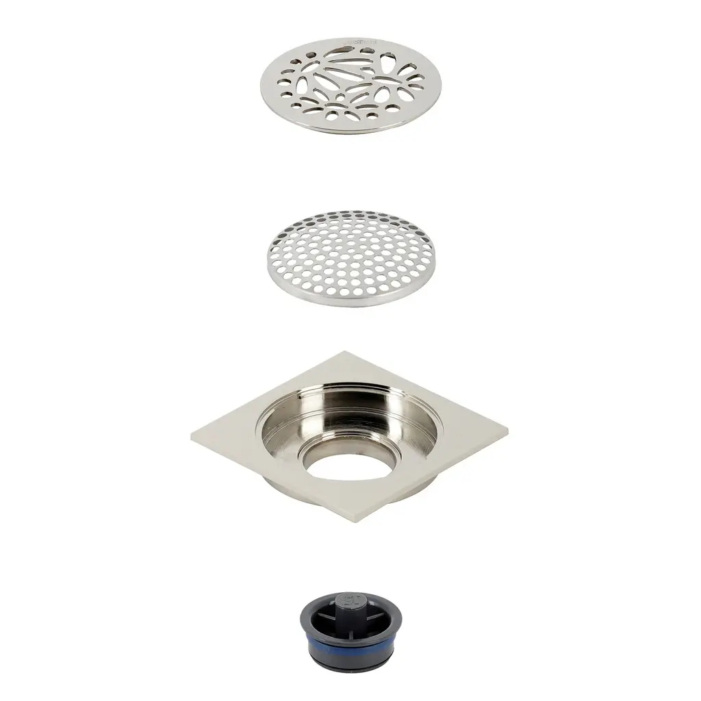 Chrome plated flat grid sink strainer for 2" opening, 1-1/2" connections. Sink drain.