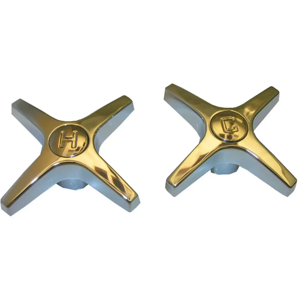 Price Pfister Beaux Art, Cross chrome replacement handle with Hot or Cold index button, 12 point broach.