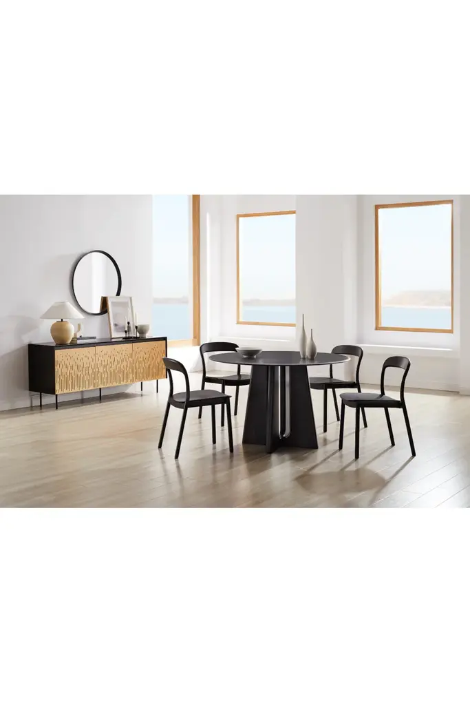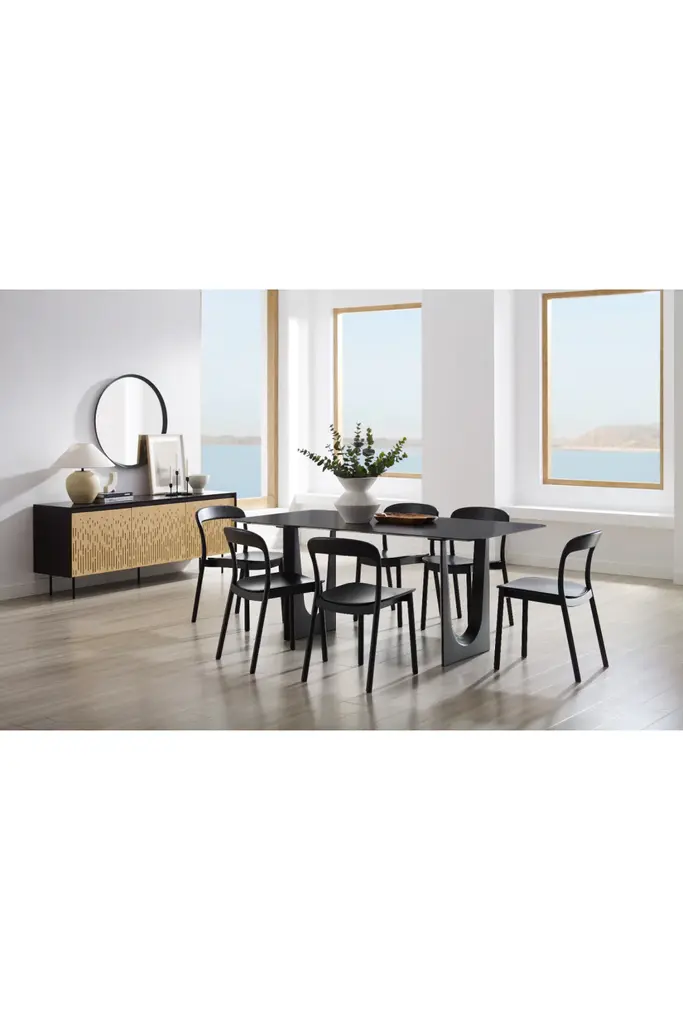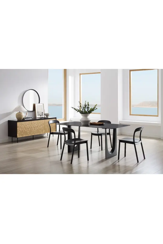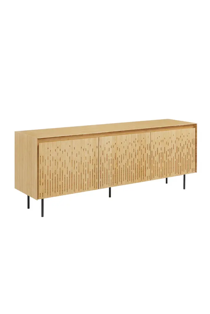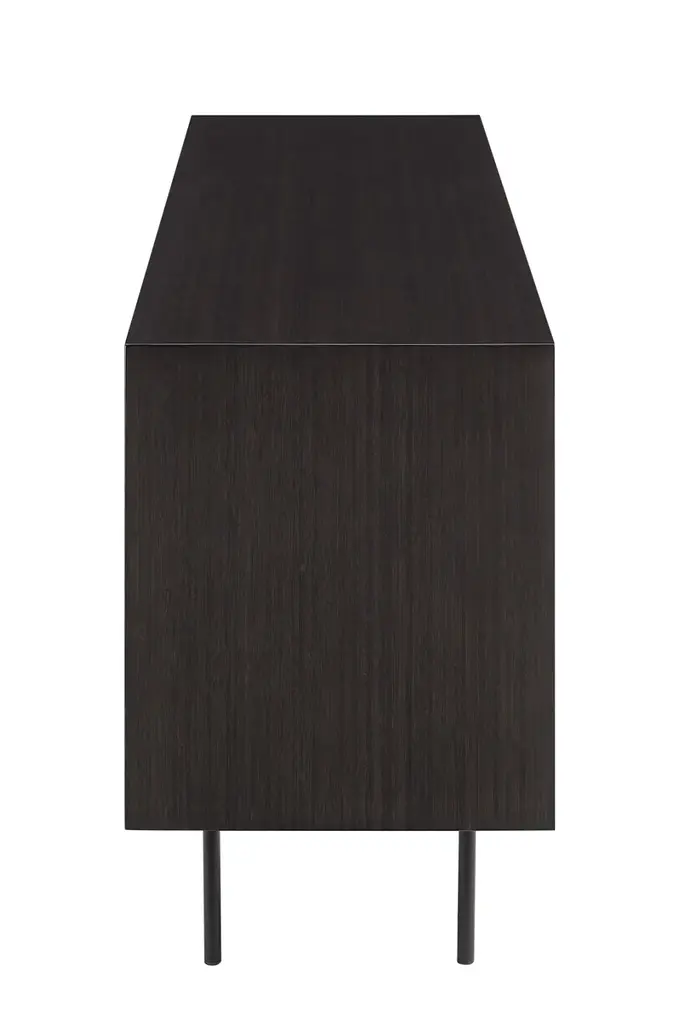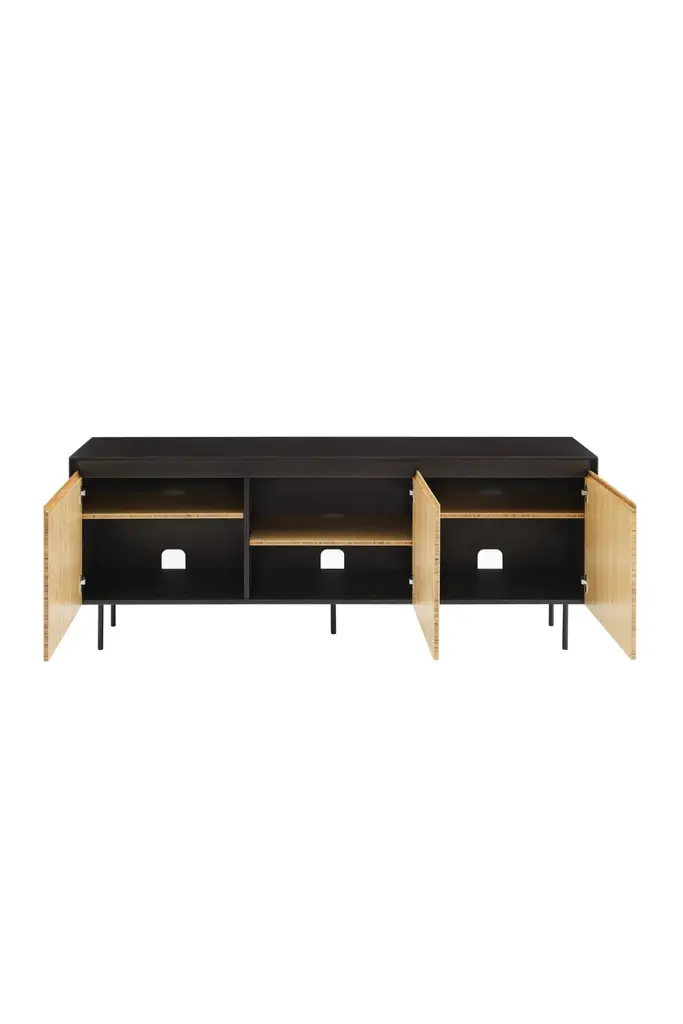 Introducing the Hanna Console - a stunning blend of classic modern design and glamorous style. Handcrafted with sustainability in mind, this console features sleek waterfall doors in a chic Caviar finish, paired with natural Wheat accents. The innovative laser cut doors offer both minimalist appeal and striking detail. With a slim steel base, soft-close doors, ample shelving, and hidden cord management, this console is perfect for any space in your home. Elevate your living space with the sophisticated Hanna Console.