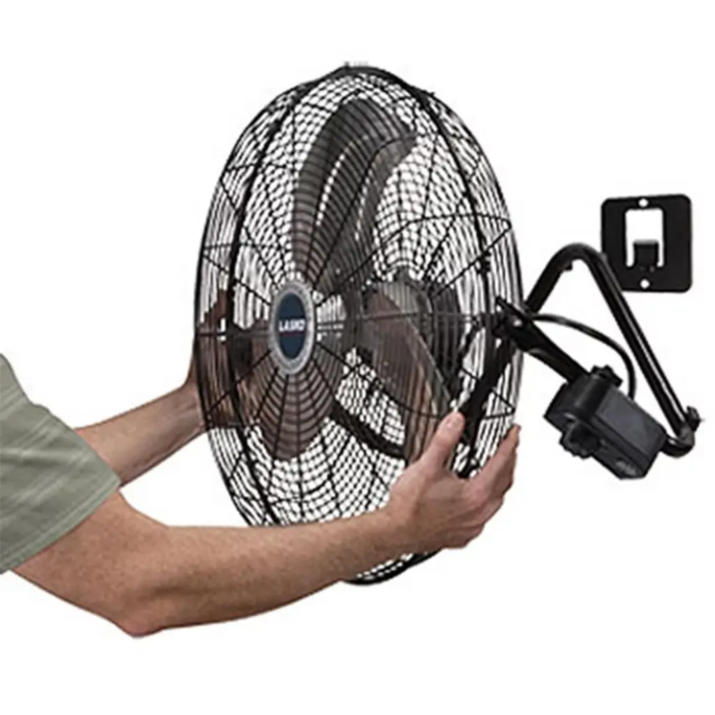Lasko's maxiumum performance 20-inch high velocity floor or wallmount fan converts easily from floor to wall use with the quickmount ststem. This industrial grade fan with tubular steel construction features metal blades to deliver maximum air movement with three powerful speeds. This fan can also pivot to direct air flow. Features: QuickMount wall-mount system Converts easily from wall to floor use Three powerful speeds Pivot action directs air flow Front-mounted controls for added convenience