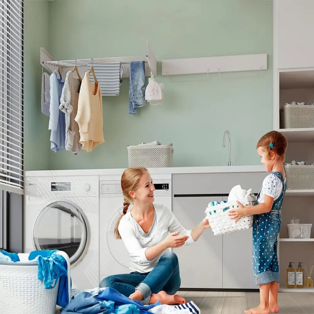 Laundry Drying Rack Wall Mount Indoor, Space Saving Wall Mounted Clothes Drying Rack With Aluminum Rods For Hanging Clothes