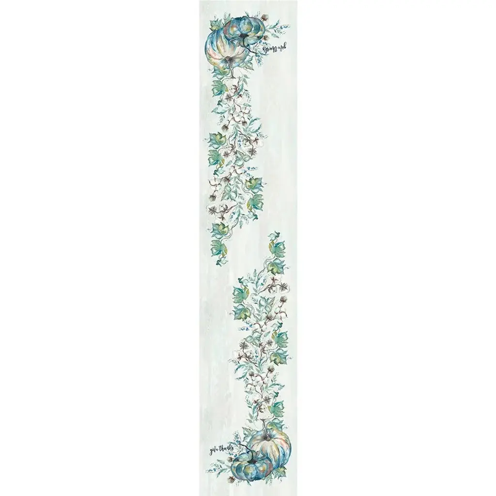 This soft to the touch "Cool Autumn" runner is an excellent way to create a cool harvest table setting. The farmhouse elements are great for a casual dinner party or a formal event. The features of cotton, pumpkins and leaves on the runner are perfect for creating a cool farmhouse harvest vibe.