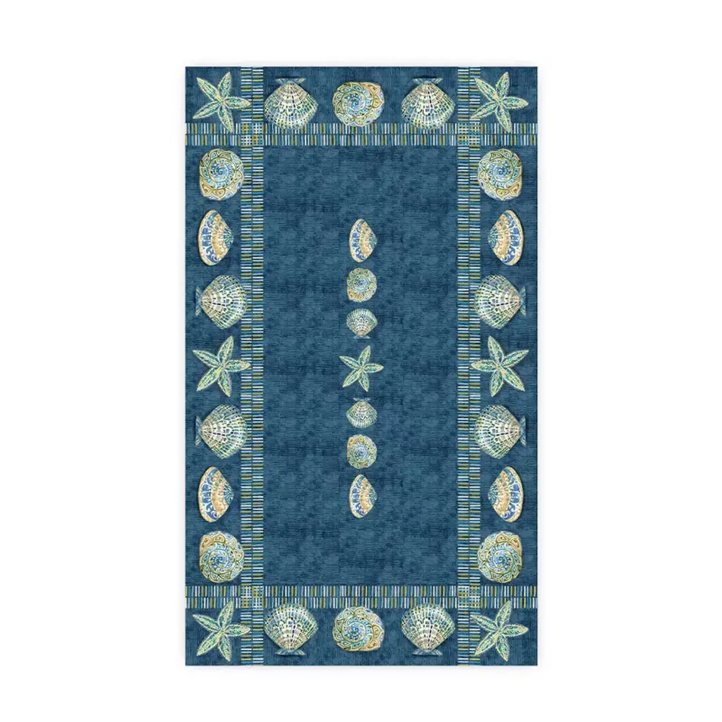 The coastal tablecloth "Embellished Shells" is the perfect addition to your table. Mosaic-style shells and starfish create a classy nautical feel, while the textured blue background creates depth to the design. This fresh twist on coastal colors is the perfect touch to any seaside escape.