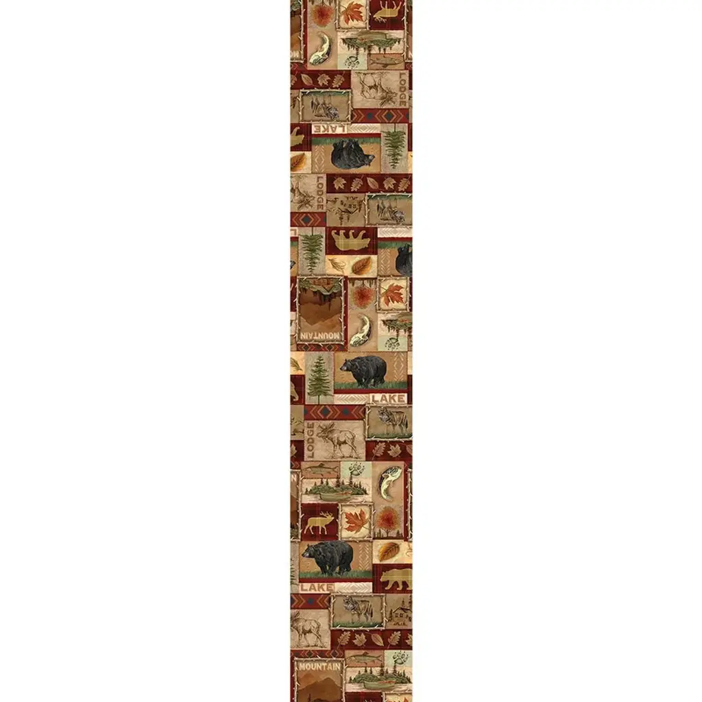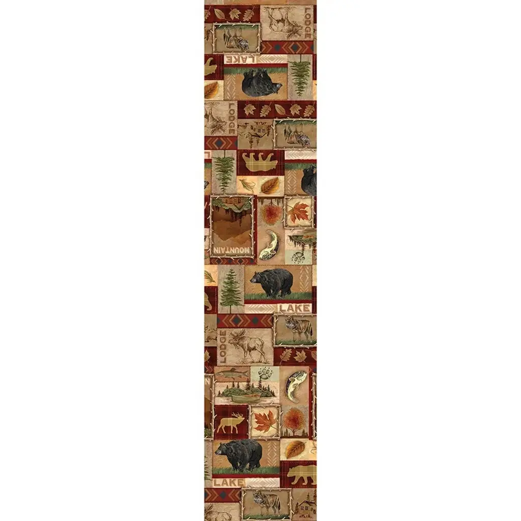 Bring the great outdoors into your home with the fun patchwork design of Laural Homes Lodge Collage table runner. The rich earth tones of the playful, wilderness-themed imagery will complement and add warmth to any lake, lodge or cabin decor.