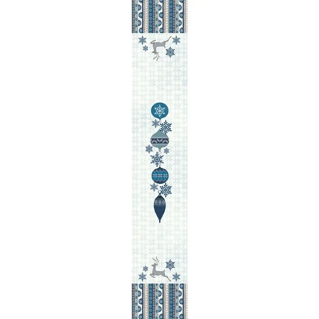 Fill your dining area with seasonal spirit courtesy of Laural Homes Simply Winter table runner! This fun, patterned design features dancing reindeer and classic snowflake icons in cool winter blue hues. The festive tones of this design will make a unique, elegant addition to your dining decor this holiday season.
