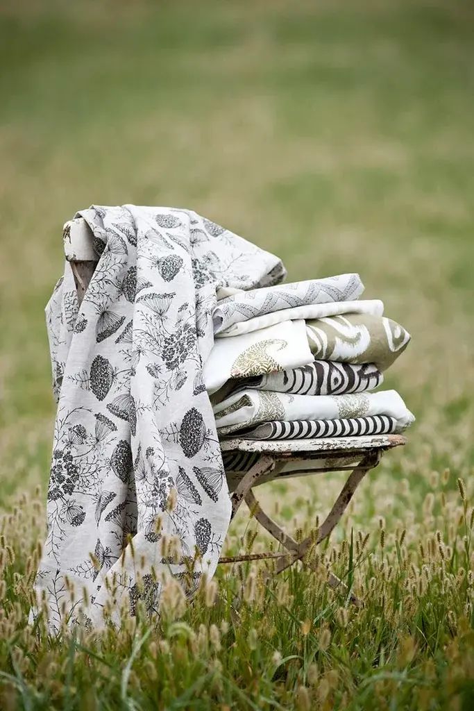 A NOTE FROM LAUREN: Live Paisley is a true "doodle". It's the very same little leaves & flowers I've doodled since childhood on the edges of my looseleaf paper during class. I even hid a small inscription the way I sometimes used to when hiding notes. The hidden inscription "Live your life" reminds me to take advantage of each & every day & to keep on doing my own thing no matter what others say or do. It's focusing on what I can do to change things & love every day and not worrying about the rest. Repeats~ Horizontal: 18" / Vertical: 14.5" Care Instructions: Washing fabric will change its appearance due to the nature of natural linen. (Fibers loosen, and it takes on a patina & fades slightly, which we love.) Most of the fabrics pictured on this website have been washed. If you order a memo, it will not come washed. Wash only in cold water on “gentle" with a gentle cleanser and dry on low or no heat so as to not break the linen's fibers. The designs that change the most when washed are those with colored backgrounds.