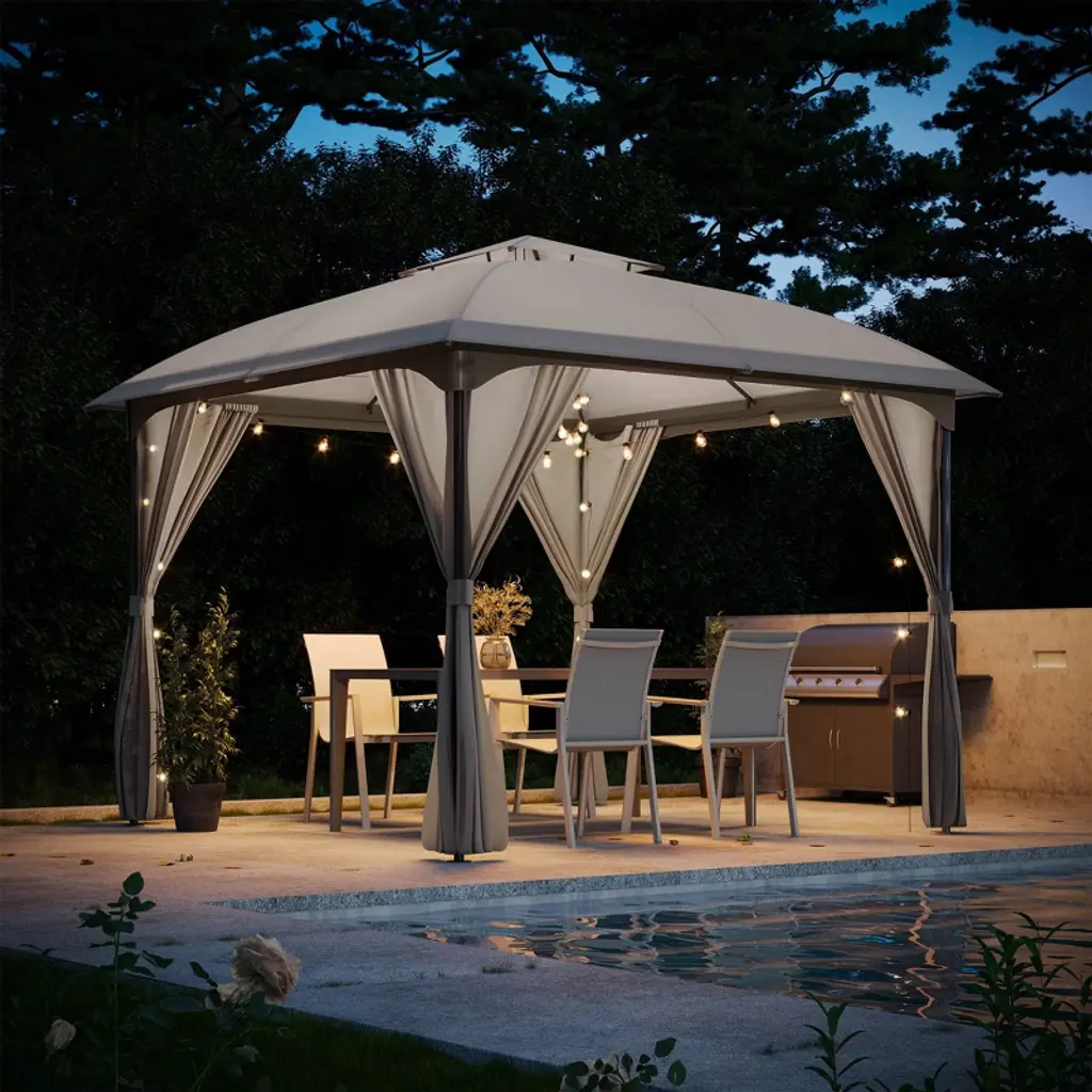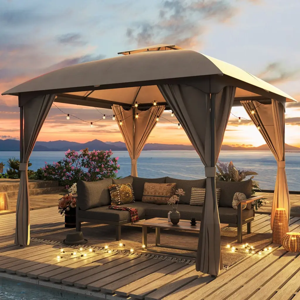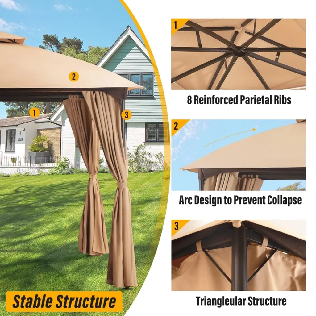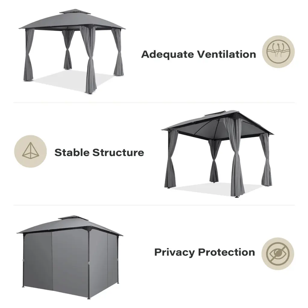 High Quality MaterialLarge SpaceUnique Arc DesignSuitable for Many Occasions 【Note】The main function of the gazebo canopy is shade, please do not use it under heavy rain, strong wind, snow, or other similar weather, if you encounter the above weather, please remove the top of the gazebo in time. Good usage habits will effectively extend the service life of the product.