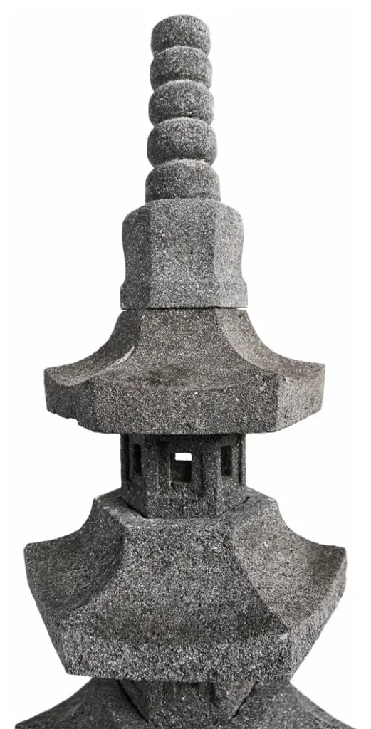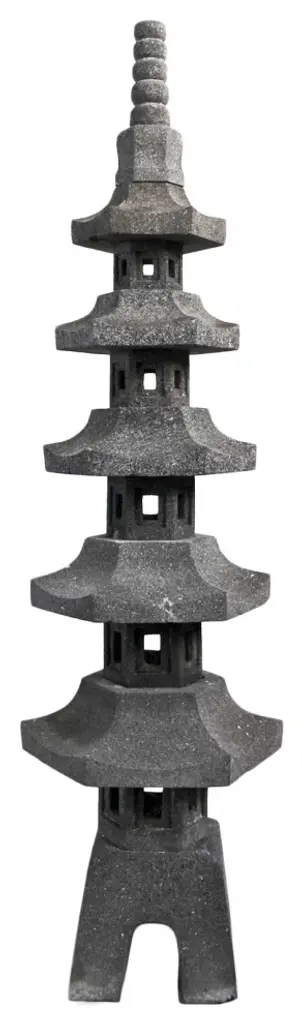 Beautiful outdoor carved lava stone garden pagoda. Hand crafted piece from Indonesia. Each level is stacked for easy installation. Can be used as is, with candles, or even turned into a lantern by your electrician. Each may vary in natural textures and imperfections.