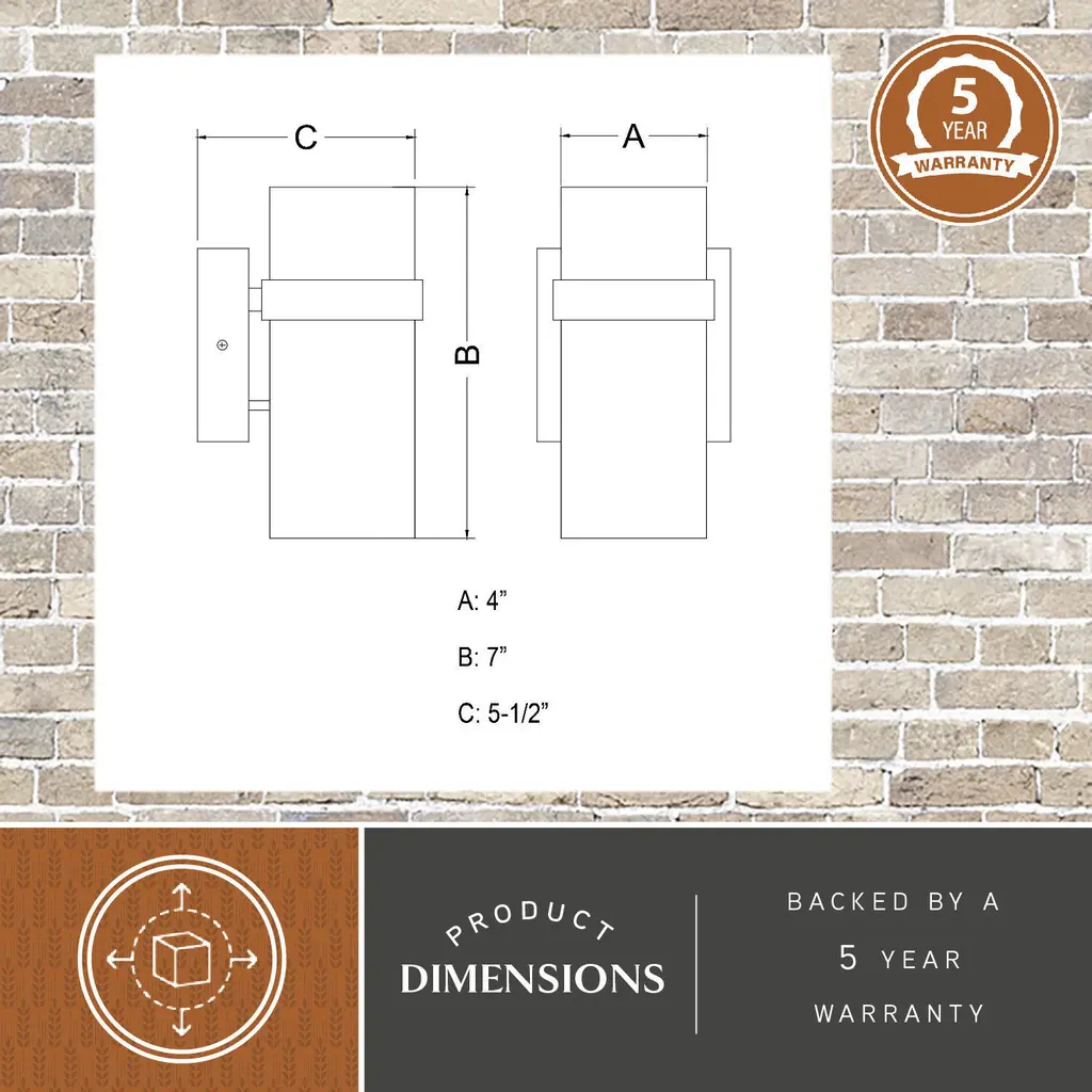Form and function describe this collection called Lavage. Light will wash the wall in an up and down direction. Finished in textured black, this stylish fixture offers a sculptural, architectural element to any modern space. Quality rust-proof aluminum construction is perfect for coastal areas or harsh conditions offering long lasting durability. An integrated LED light source provides energy saving, no bulb changing convenience, low maintenance and long lasting performance. Ideal for your porch, entryway, garage, or any other area of your home.