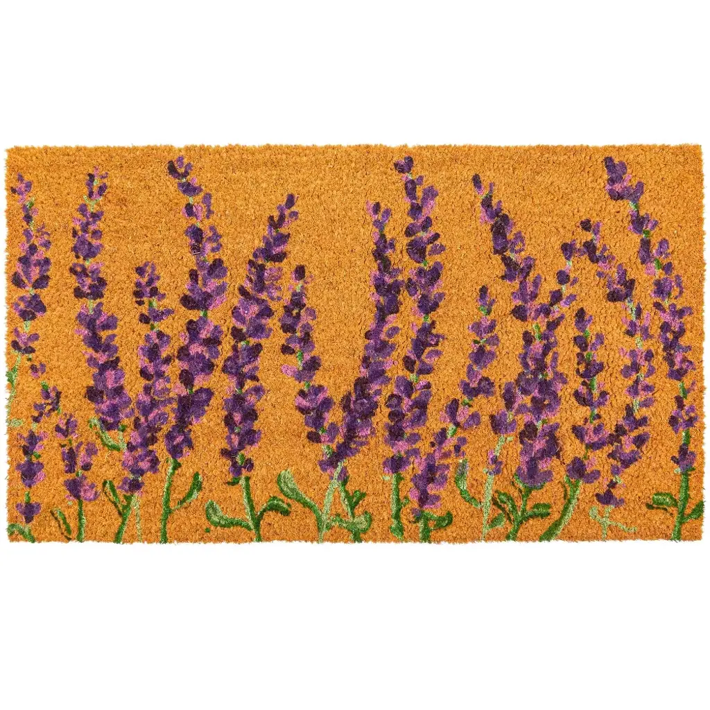 Step into spring style with this coir mat. Perfect for adding an extra charming touch to any entryway, this welcoming design features a stunning lavender pattern with an embossed butterfly accent. Crafted from coco husk fiber, the eye-catching mat is natural and eco-friendly. Ideal for high-traffic areas, the mat traps dirt and debris to prevent messes from being tracked into homes. Designs are printed directly on the mats with fade-resistant dyes. Since the mat is crafted from natural coir, some shedding is to be expected. Shake off excess fibers or use a soft brush to gently sweep.