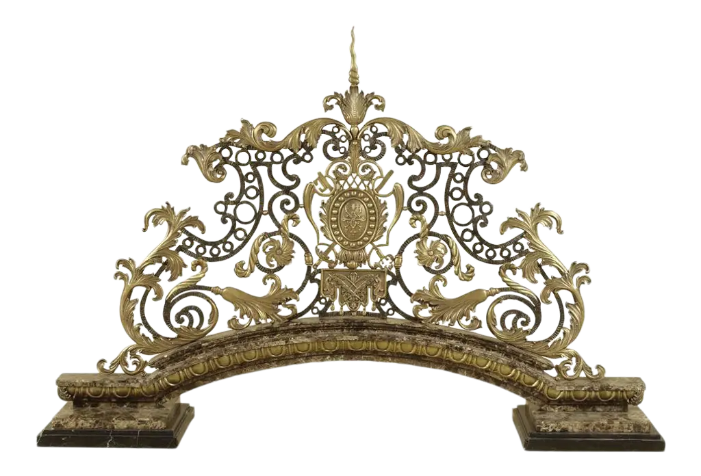 Lavish Gold Bronze Iron Scroll Monogram Wall Plaque Overdoor Palace Initial Arch