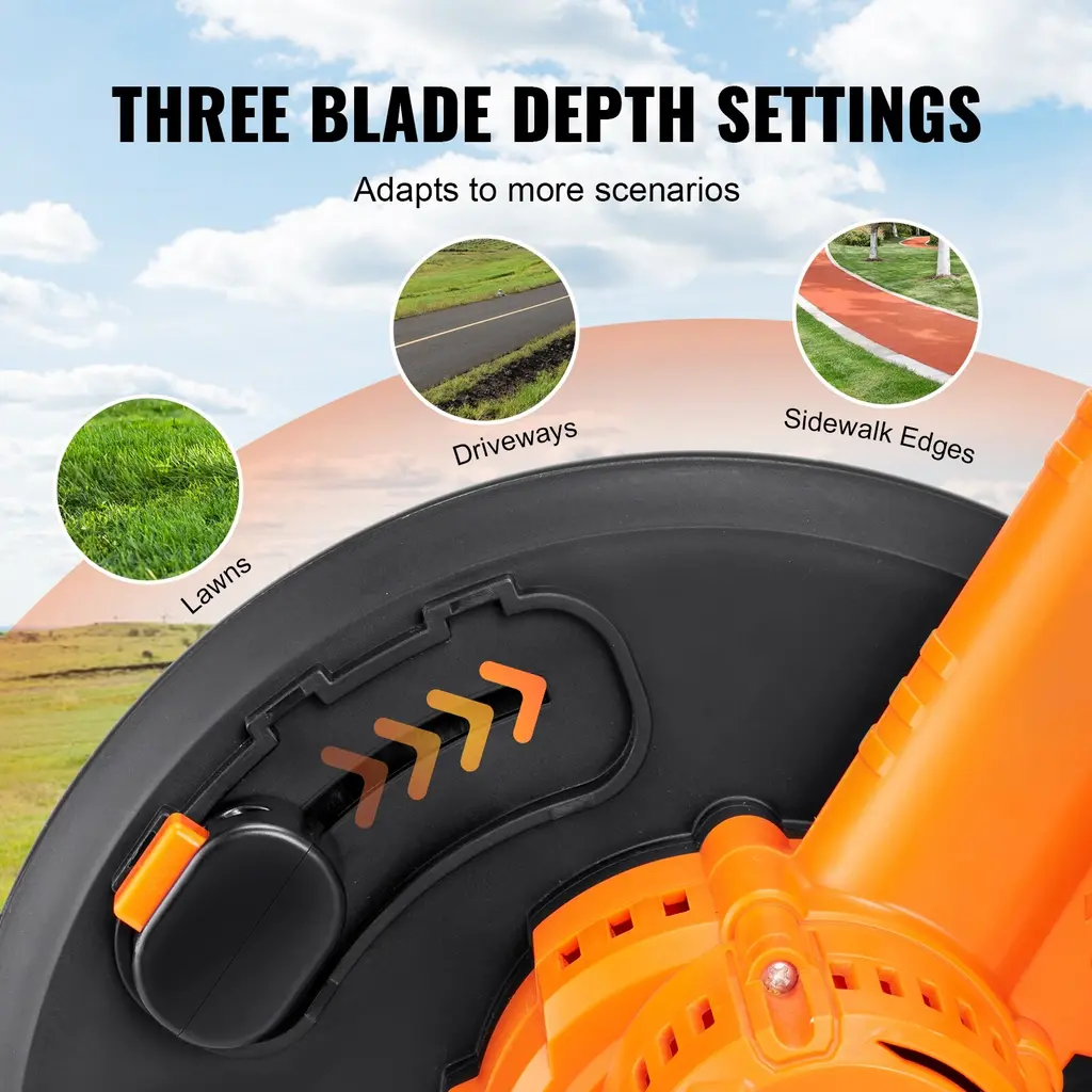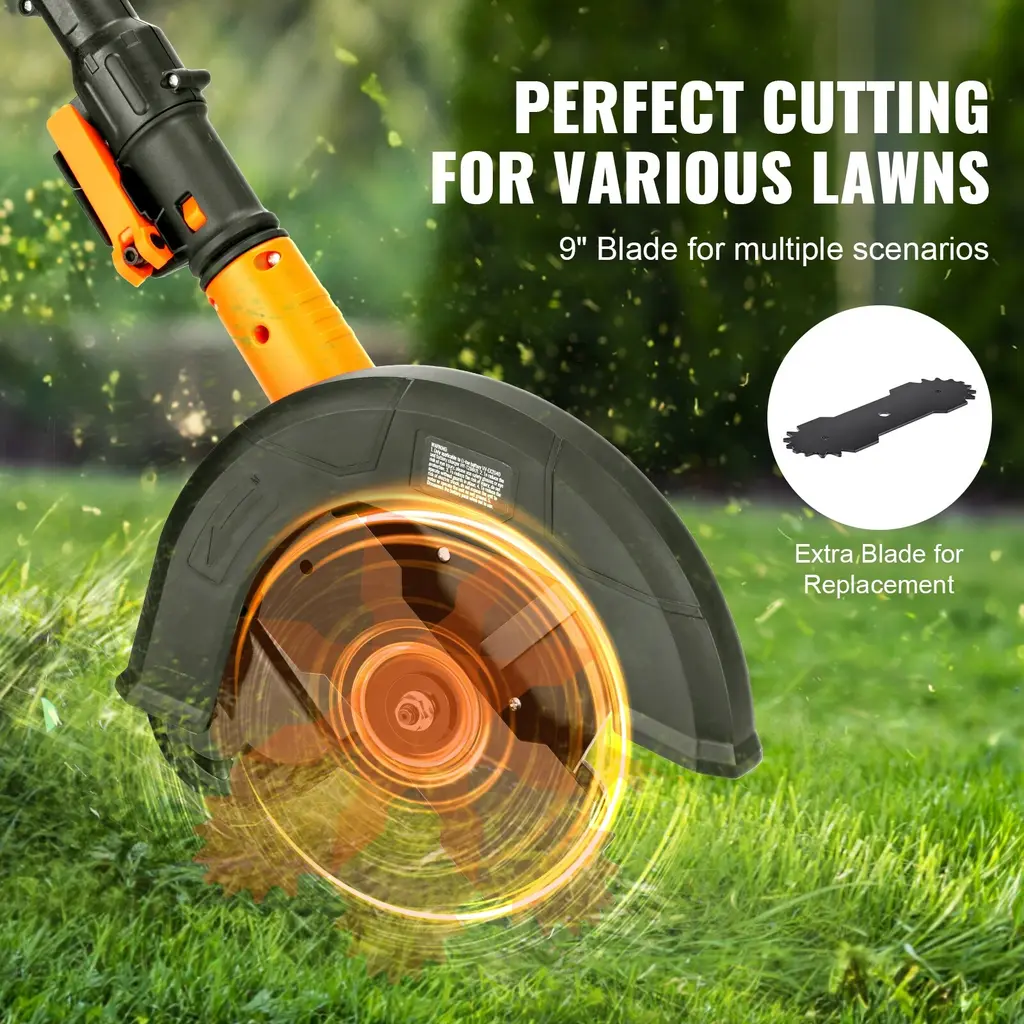 Power Beyond Belief: Unlike most lawn edgers, our edger is equipped with a 4000mAh high-efficiency battery, allowing for continuous use of 30-40 minutes on a single charge. You won't have to recharge frequently for large garden trimming tasks. Its robust motor provides a high speed of 20000rpm, meaning faster edging that reduces your work time. Effortless to Use: When using this cordless edger, you'll appreciate its light weight of just 9.3 lbs/4.23 kg. Even for women, it's easy to lift, making the edging work manageable. Long hours of work are no longer a pain. It is the perfect companion for marathon edging sessions. 9-Inch Large Blade: The high-quality 9-inch blade can edge 3" to 11" tall lawns. You just need to gently push it to finish the edging task. This yard edger is ideal for trimming the edges of various lawns like Bermuda grass, St. Augustine grass, Zoysia grass, fescue, bluegrass, ryegrass, and more. Three Depths Adjustment: Discover precision like never before with our edger lawn tool's three-depth blade setting. Say goodbye to the hassle, and say hello to ideal trenches for burying wires. User-friendly Design: Simply hold the ergonomic handle and push from behind to see the battery powered grass edger quickly edge at an amazing speed. The adjustable handle can be freely modified as per your needs, making it suitable for use in various settings like lawns, driveways, and sidewalk edges. Package Content 1 x Lawn Edger 1 x Battery 1 x Charger 1 x Blade