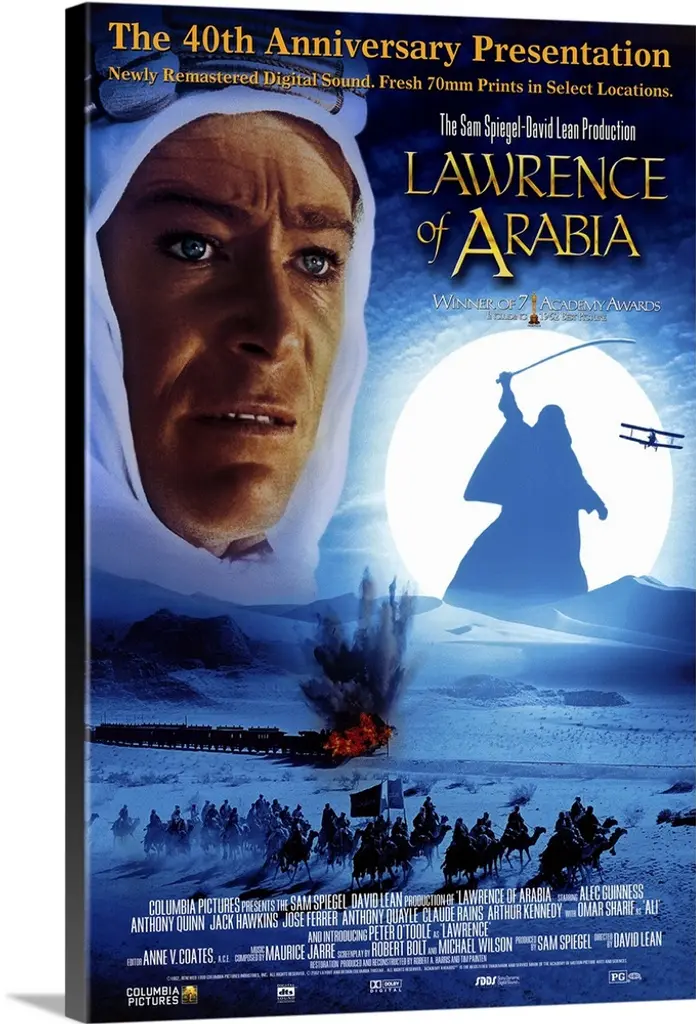 Exceptional biography of T.E. Lawrence, a British military observer who strategically aids the Bedouins battle the Turks during WWI. Lawrence, played masterfully by O'Toole in his first major film, is a hero consumed more by a need to reject British tradition than to save the Arab population. He takes on Arab costume and a larger-than-life persona. Stunning photography of the desert in all its harsh reality. Blacklisted co-writer Wilson had his screen credit restored by the Writers Guild of America in 1995. Laser edition contains 20 minutes of restored footage and a short documentary about the making of the film. Available in letterboxed format.