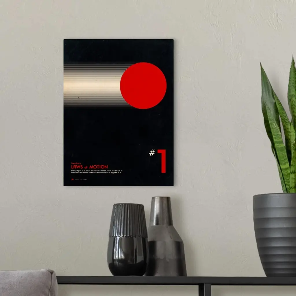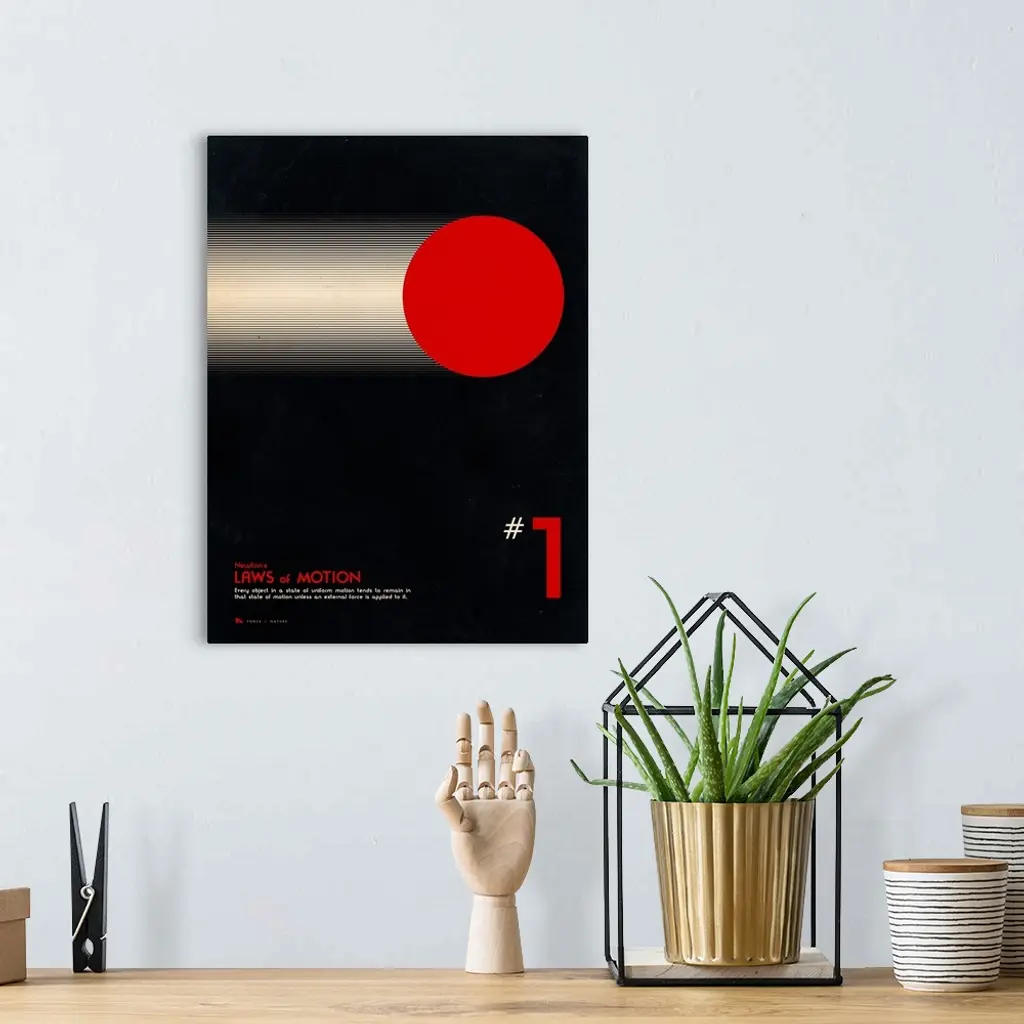 Educational graphic poster with facts about the first law of motion.