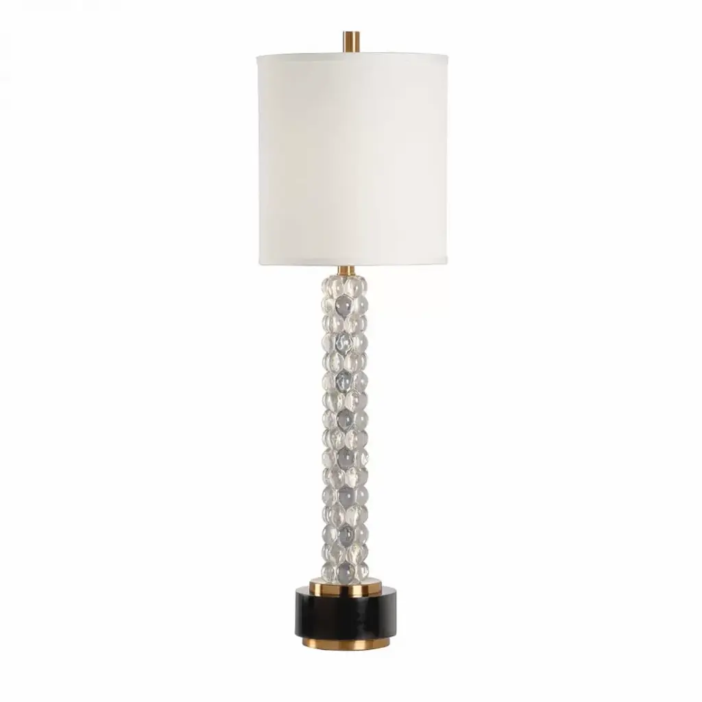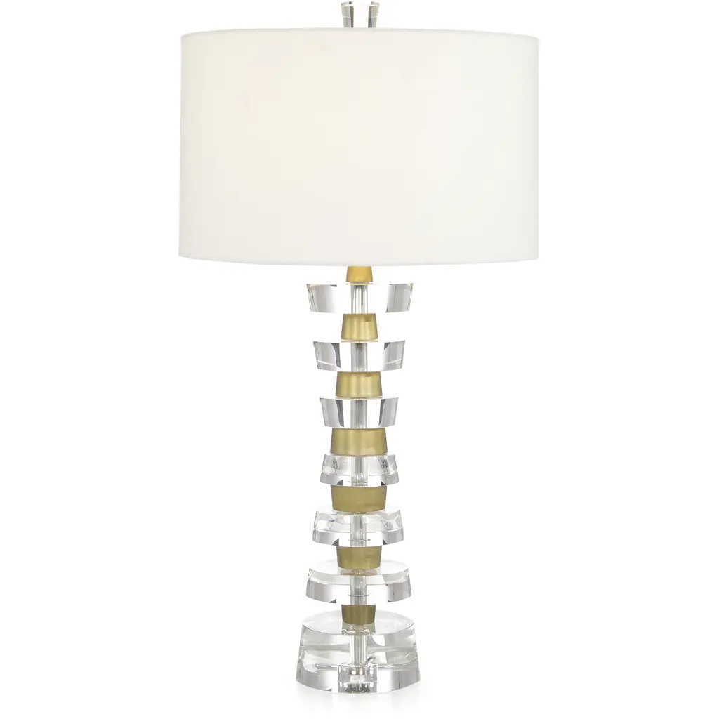 Clear Crystal And Antique Brass Stacked Lamp With Anitque Brass Mounting