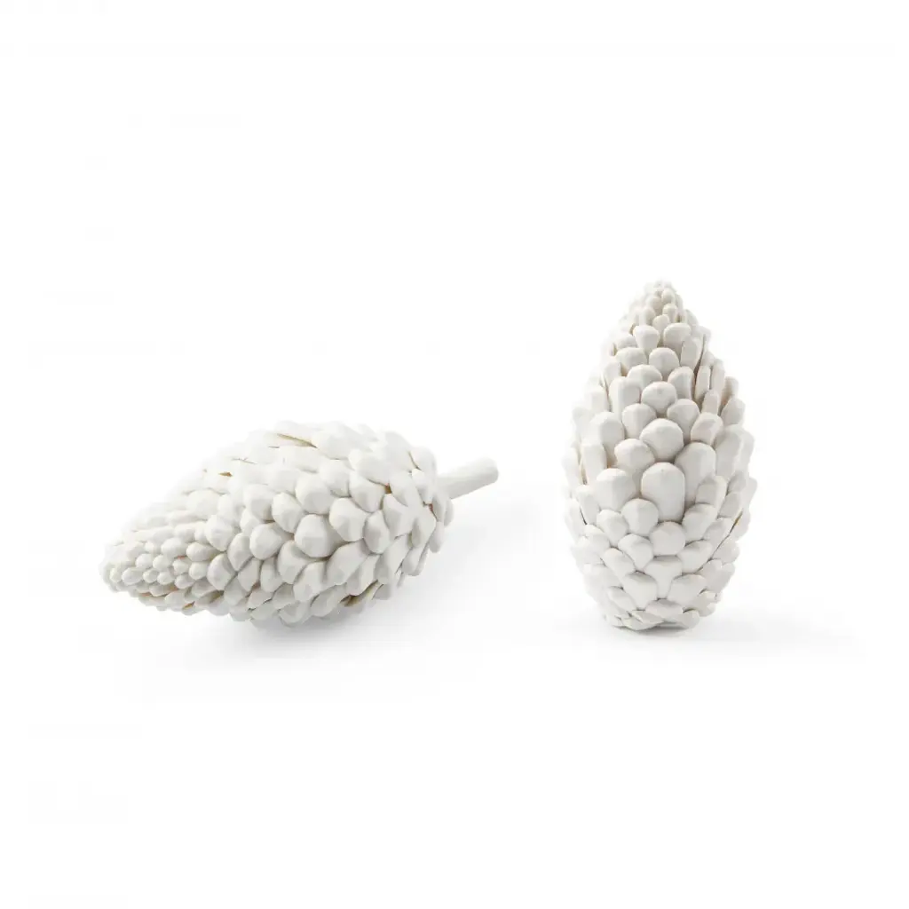 The Pine Cone Collection from Villa & House is a charming woodland-inspired objet d’art created for those who love a natural accent. These rustic-chic pieces have been rendered in a stark Blanc de Chine to highlight the natural geometry and meticulously detailed scales. Offered in two sizes, they can be showcased individually or paired to add a touch of bucolic serenity to your space.