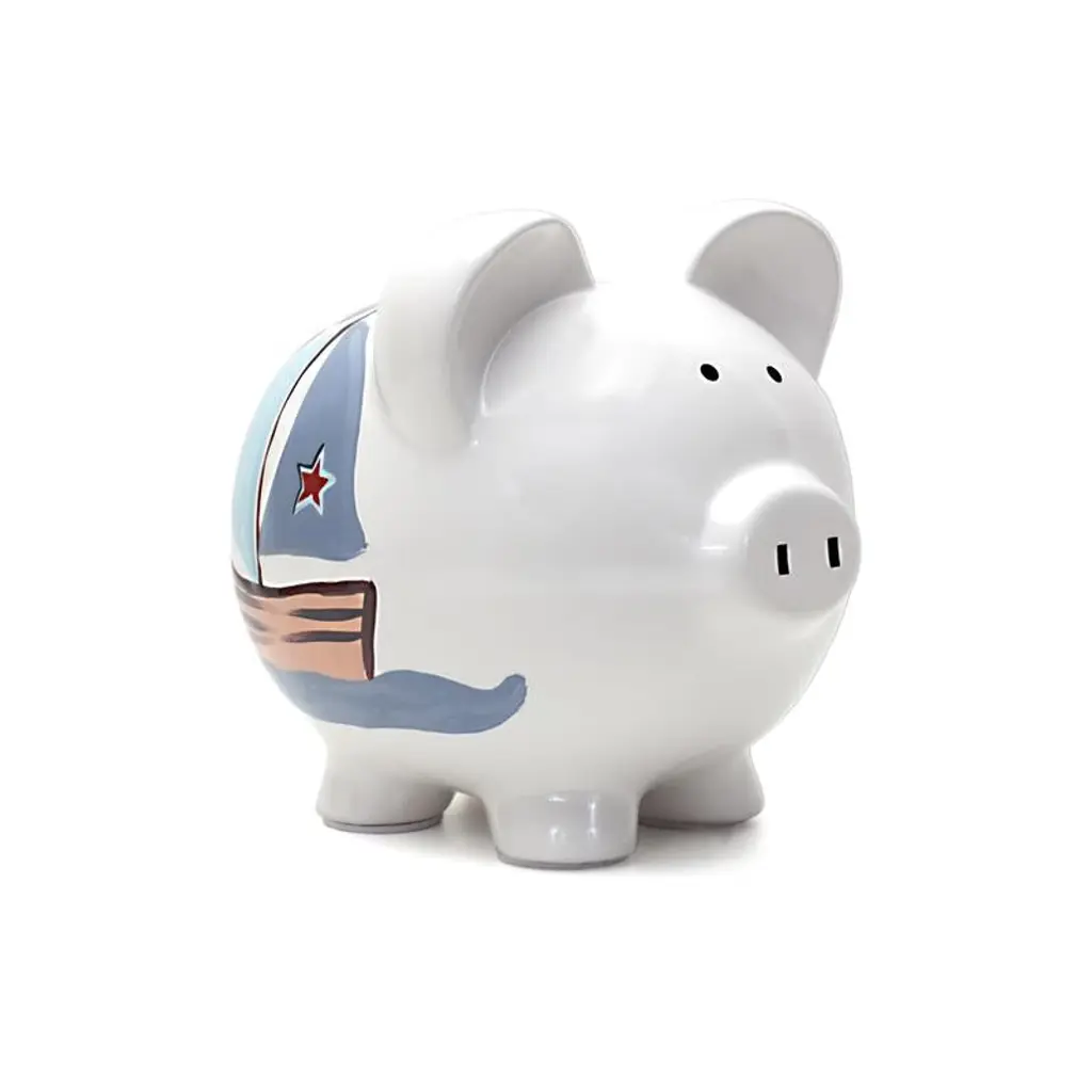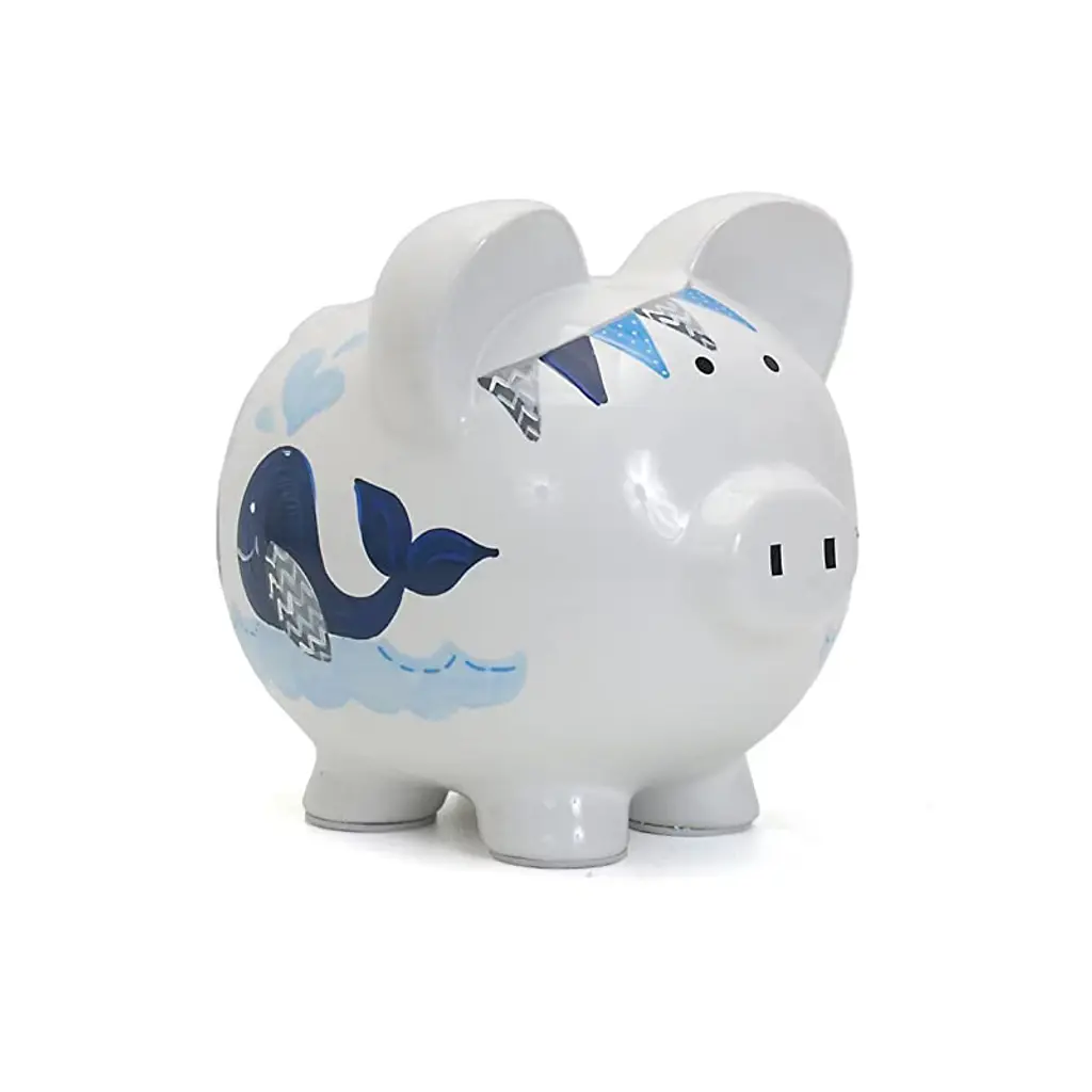 Our line of Coco Elephant banks are some of the most unique piggy banks that you can find! Our NEW blue Coco Elephant Bank comes with a rhinestone encrusted ceramic crown and a classy cross hatch detail, for added texture and design. This bank, like all of our banks, is made from the highest quality ceramic known as dolomite for increased durability. The base is deep glazed, to ensure that the essential color doesn't wear off with repeated handling. To top things off, we add a shiny finishing that keeps the colors of all of the underlying components locked in place.