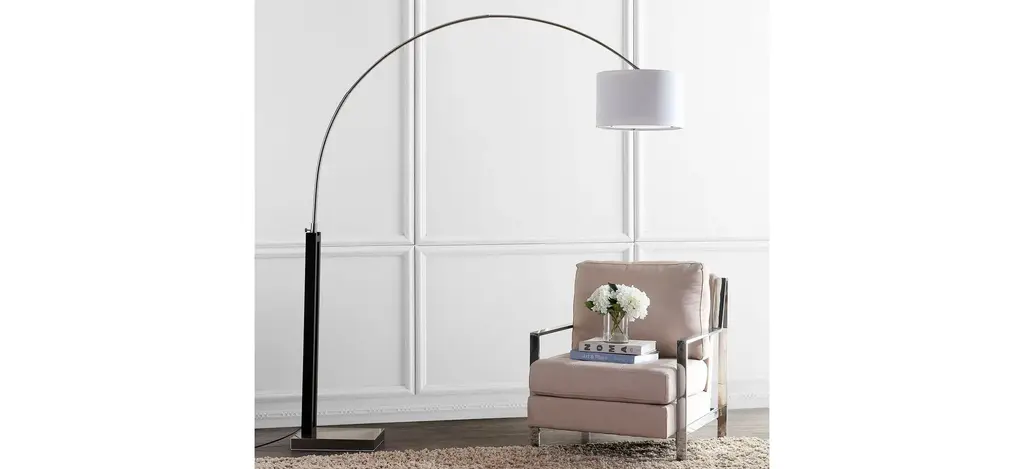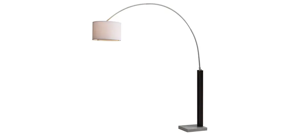 A handsome combination of contrasting black and nickel finishes makes this Layla Arc Floor Lamp a contemporary design standout. A sculptural curved arm floats gracefully from a sturdy base to create a luxurious ambiance in a transitional living room or study.