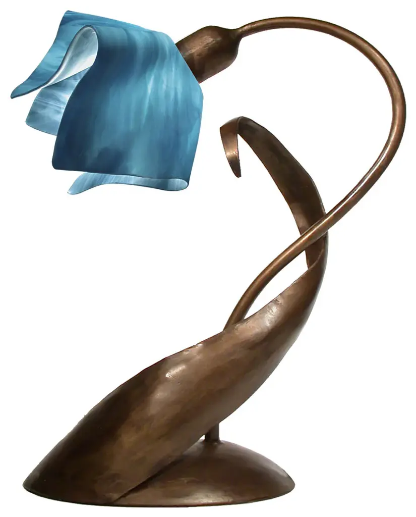 The Jezebel Radiance line of glass is premium, heirloom quality glass. Jezebel Radiance glass has streaks of bold, brilliantly intense color with a shiny surface. Glass shades are shaped using a process patented to Jezebel. This is a stunningly beautiful hand rolled sheet glass. There is no unsightly hot spot from a light bulb. Meanwhile, pure color and light will flood your space with ambiance. Jezebel Radiance Lazy Daisy Lamps are made in the USA of handcrafted glass using a process patented to Jezebel. The remarkably saturated hues can be ordered in a variety of glass colors. All Jezebel Radiance products are UL certified and 120 Volts. This light can be used with a medium base bulb (not included): Incandescent, Fluorescent or LED. Naturally occurring air bubbles, inclusions, textures and slight color variations demonstrate that your Jezebel Radiance Lazy Daisy Lamp is an original work of art. Your Jezebel Radiance Lazy Daisy Lamp is made of hand-forged iron and comes with our 2-year limited warranty. If your hardware or glass shade arrives defective in any way, please contact your retailer for claim instructions. Naturally occurring air bubbles, inclusions, textures and slight color variations demonstrate that the glass on your Jezebel Radiance Lazy Daisy Lamp is an original work of art. Our glass is handmade in the USA using a process patented to Jezebel. This entirely handmade light measures 20"H x 9.75"W x 16"D. The hand-forged iron base is wired for 120 volts and comes with a full-range in-line dimmer. This light can be used with a medium base bulb (not included): Incandescent, Fluorescent or LED. UL approved, dry, wet or damp or similar testing lab: UL compliant, for dry or damp areasHardwire or plug: PlugType of bulbs needed: Medium BaseWattage: 60 watt Incandescent or equivalent LEDNumber of bulbs required? (Included? Y/N): 1 (N)