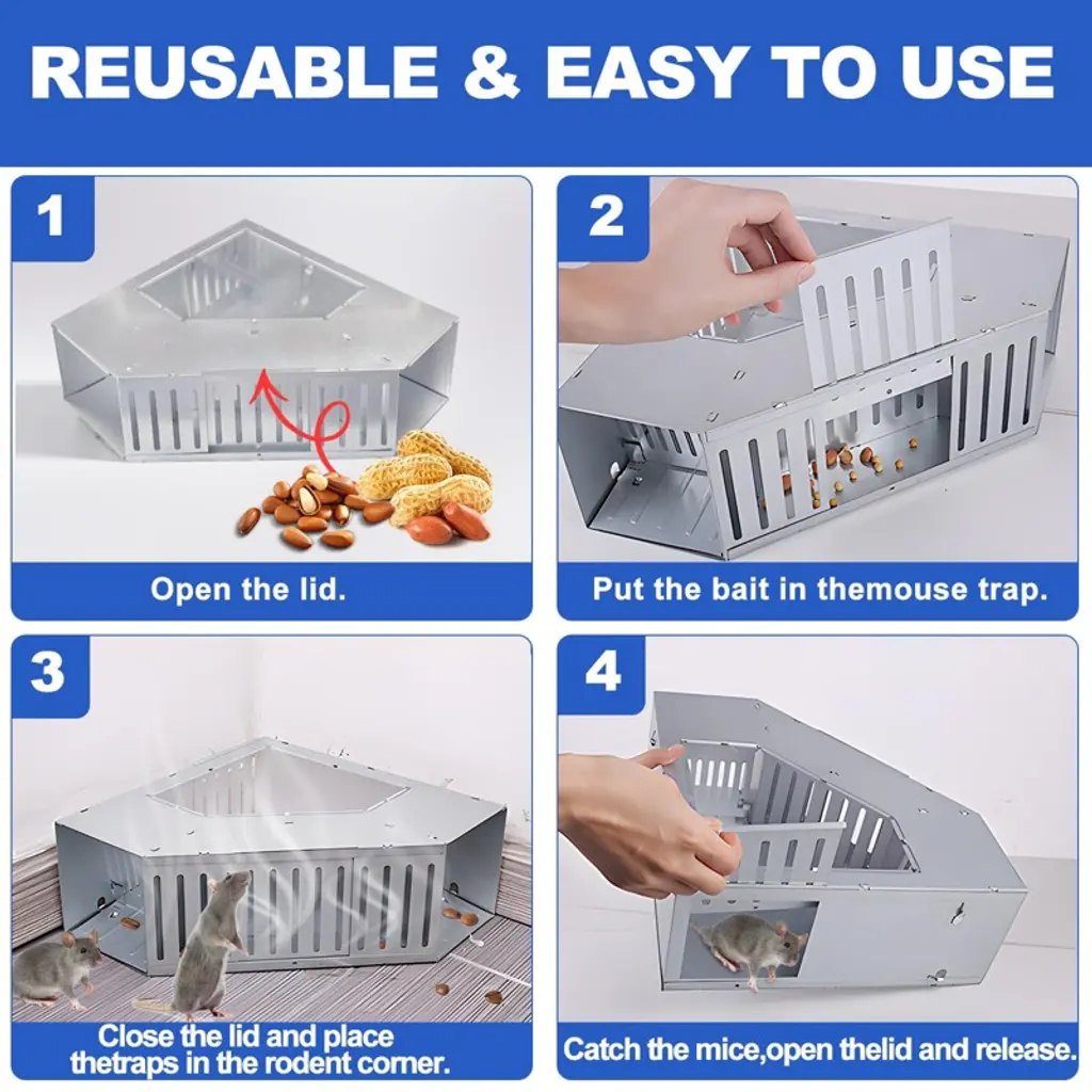Tired of messy, ineffective rodent control? Our Bidirectional Continuous Rat Trap offers a no-bait, no-kill solution that safely captures mice without harmful chemicals. Featuring a high-sensitivity one-way entry system, this trap automatically catches rodents with zero effort—once they enter, they can’t escape! Made from galvanized rust-proof mesh, it’s built for long-term indoor/outdoor use and can hold multiple mice at once. The sliding door ensures easy baiting (if desired) and safe release, while the large, sturdy design keeps kids and pets safe. Perfect for kitchens, garages, gardens, and more!
