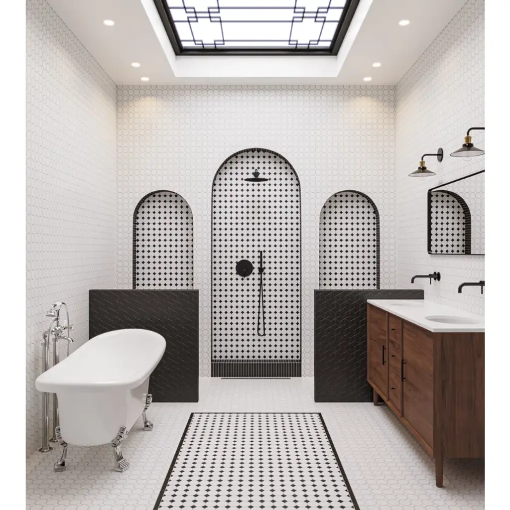 With nine exquisite shapes to choose from including penny round, straight stack, herringbone, diamond, and hexagon, the Le Cafe collection offers a stunning visual feast that is sure to impress. The intricate designs and elegant shapes add a touch of refinement and luxury to your interiors, making them an excellent choice for modern and traditional decor styles alike. With eight sizes to pick from, you'll have the freedom to create a truly unique and personalized space that speaks to your distinct style. Transform your home into a mesmerizing work of art with Le Cafe.