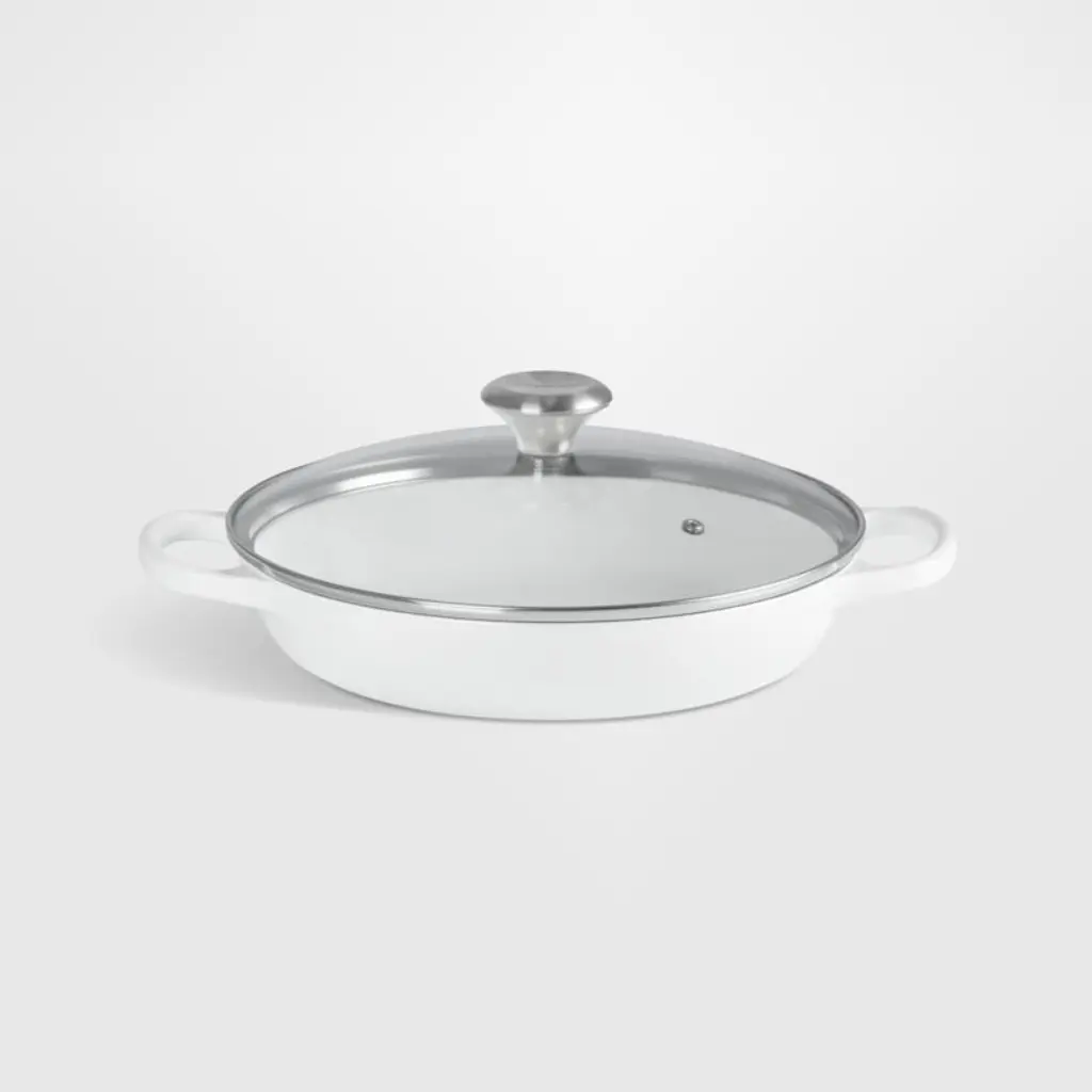 This braiser is clad in Le Creuset's signature red-orange enamel inspired by the raw beauty of molten iron being poured from a crucibleor creuset. The durable coating renders the cast iron impervious to acid, odors and stains and requires no seasoning. The tight-fitting glass lid creates a blanket of heat for even cooking, ideal for braising meats or vegetables and keeping casseroles or baked goods warm (and keeping an eye on your recipe's progress). This versatile pan goes effortlessly from stove to oven to table for a summery presentation of short ribs, nachos or nectarine crumble.Revered by both professional chefs and home cooks since its 1925 debut, Le Creuset's classic French cookware is prized for its utilitarian beauty and unsurpassed heat retention.
