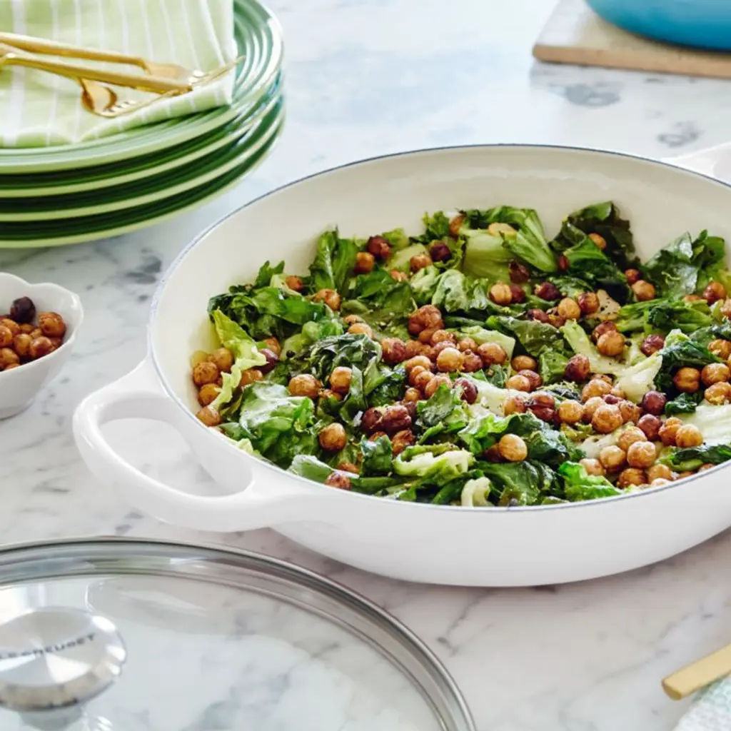 Clad in durable white enamel, this cast iron braiser is impervious to acid, odors and stainsand requires no seasoning. The tight-fitting glass lid creates a blanket of heat for even cooking, ideal for braising meats or vegetables and keeping casseroles or baked goods warm (and keeping an eye on your recipe's progress). This versatile pan goes effortlessly from stove to oven to table for a classic presentation of short ribs, potato gratin or pear crumble.Revered by both professional chefs and home cooks since its 1925 debut, Le Creuset's classic French cookware is prized for its utilitarian beauty and unsurpassed heat retention.