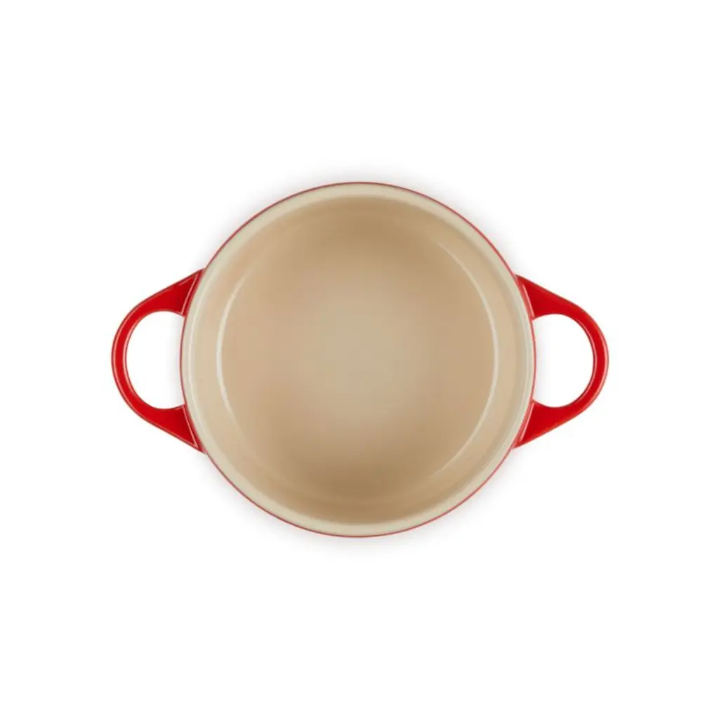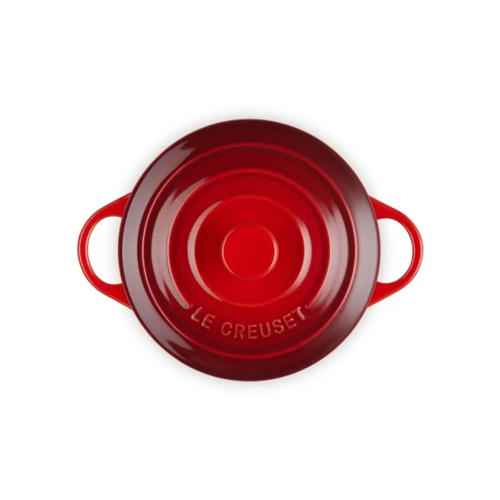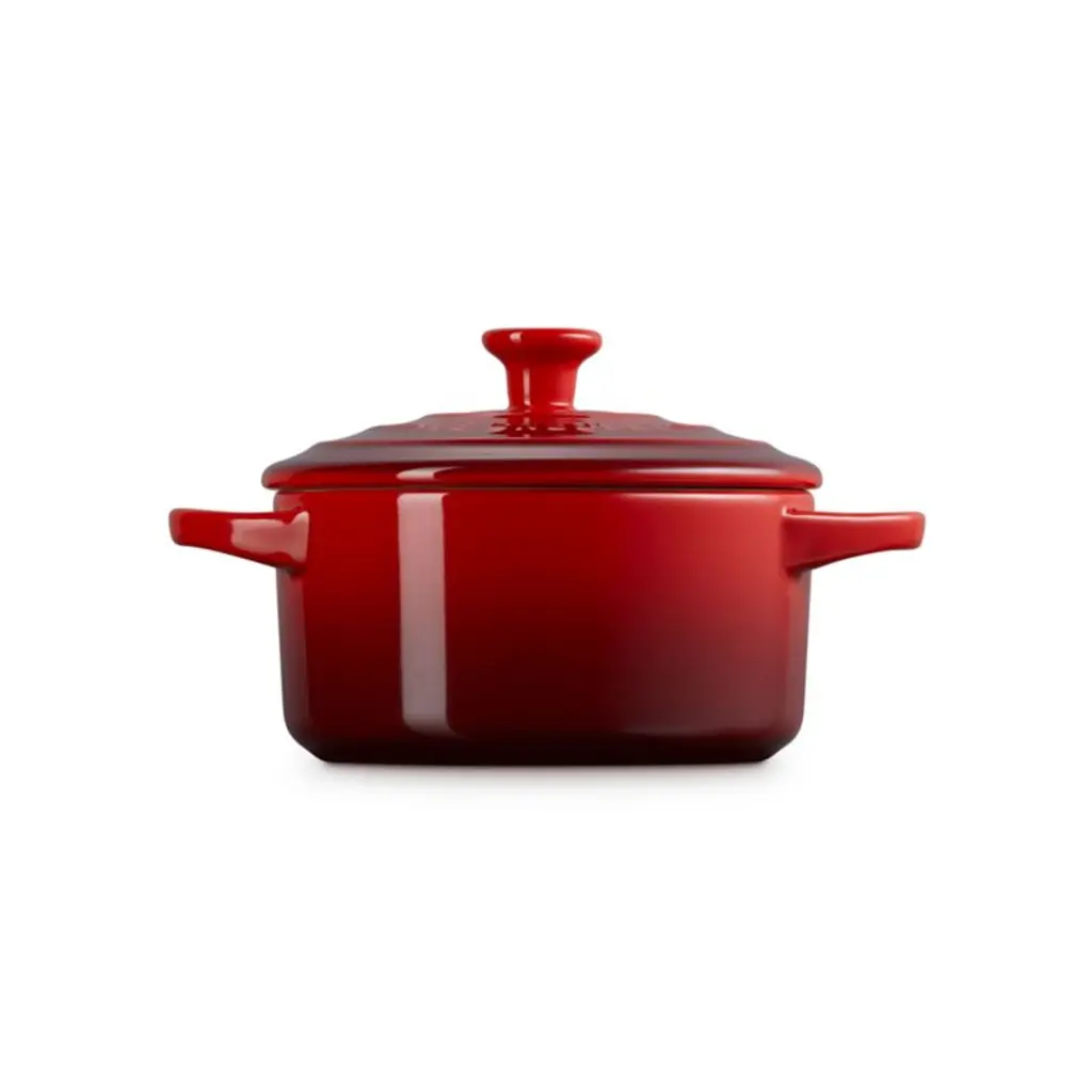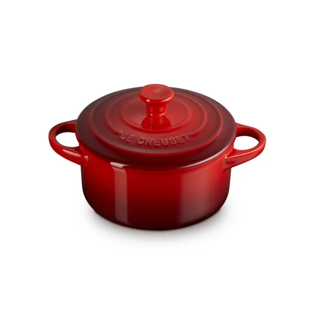 Bake and serve individual servings of pot pie, potato gratin or berry cobbler in charming style with this mini cocotte. Inspired by cherries, vibrant red enamel coats the baking dish. The ombre glaze seals the dense stoneware, blocking moisture absorption to prevent cracking, crazing, scratches and stains. The lid locks in moisture, while the nearly non-stick interior effortlessly releases food and cleans up easily. This round cocotte goes from oven to table for a warm and welcoming presentation of entrees, desserts, baked dips and more.Revered by both professional chefs and home cooks since its 1925 debut, Le Creuset's classic cookware is prized for its utilitarian beauty and unsurpassed heat retention.