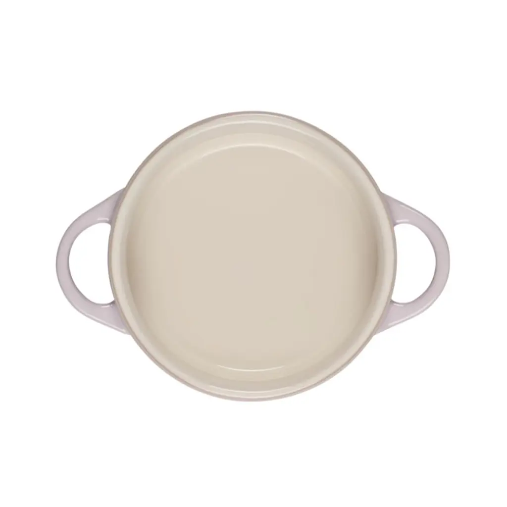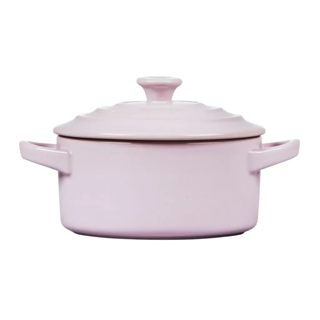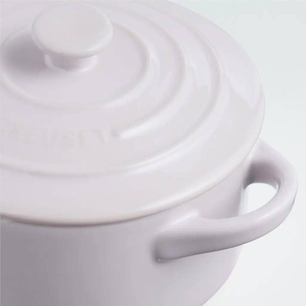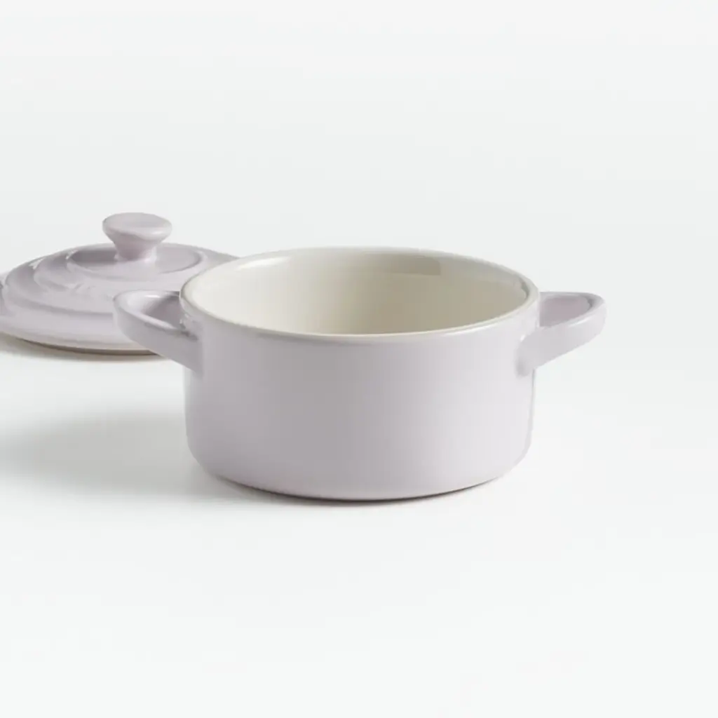 Serve a single serving of vegetable pot pie, cornbread or chocolate lava cake in charming style with this mini cocotte enameled in creamy blush-purple inspired by shallots. Crafted of dense stoneware, the miniature baking dish blocks moisture absorption to prevent cracking, crazing, scratches and stains. The lid locks in moisture, while the nearly non-stick interior effortlessly releases food and cleans up easily. This mini round cocotte makes a sweet gift for a baking and hosting enthusiast.Revered by both professional chefs and home cooks since its 1925 debut, Le Creuset's classic French cookware is prized for its utilitarian beauty and unsurpassed heat retention.
