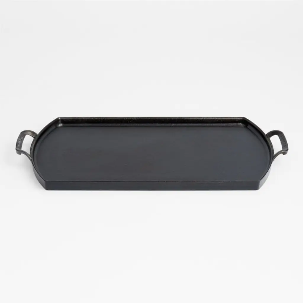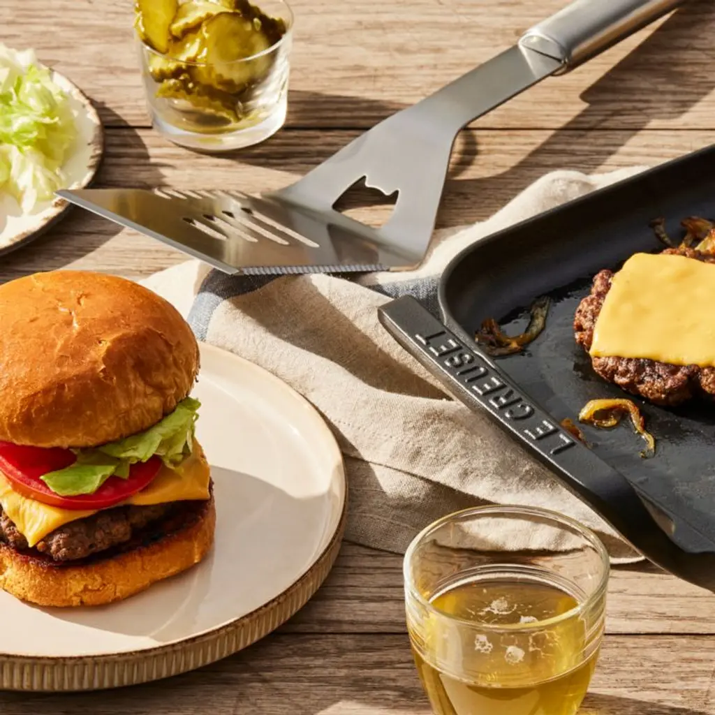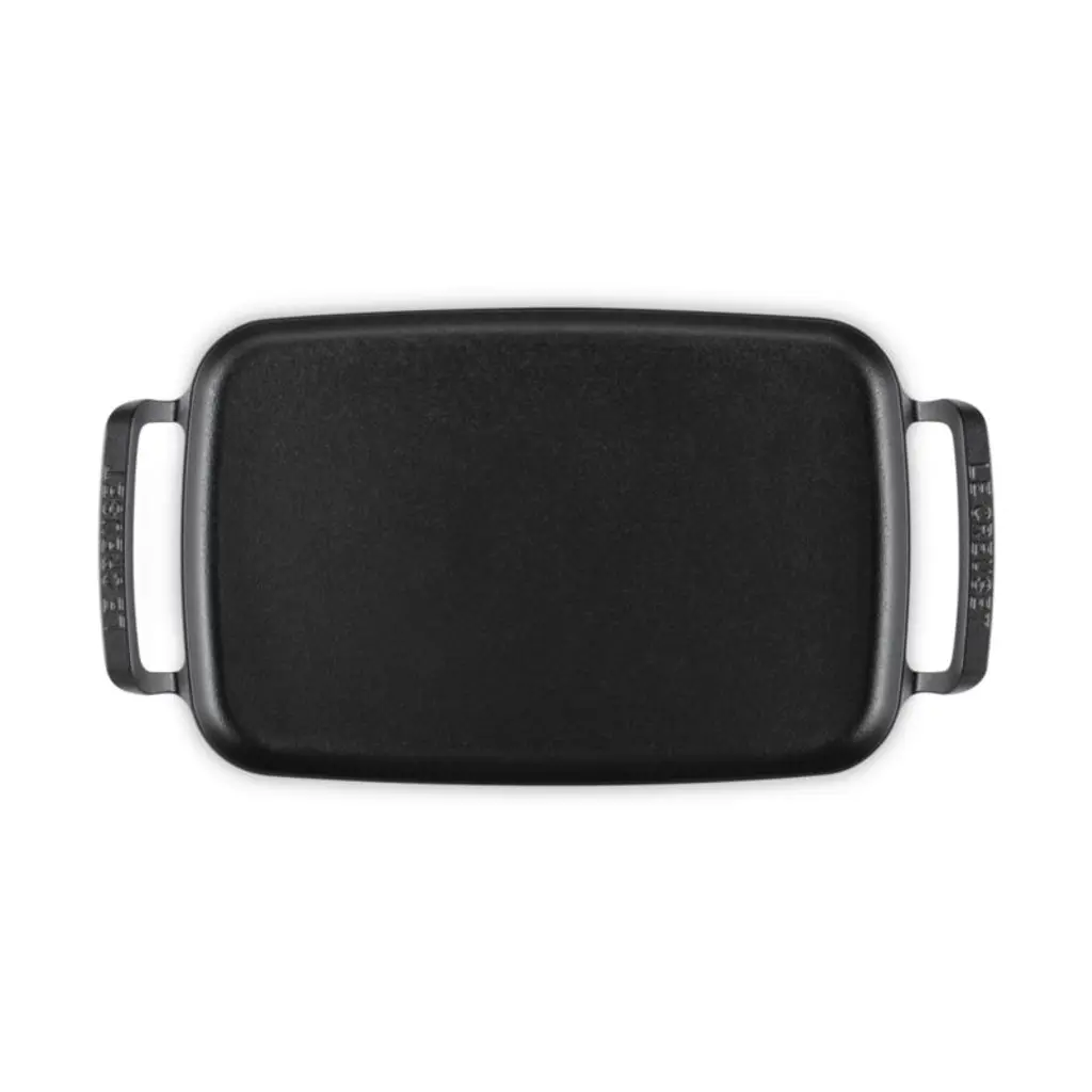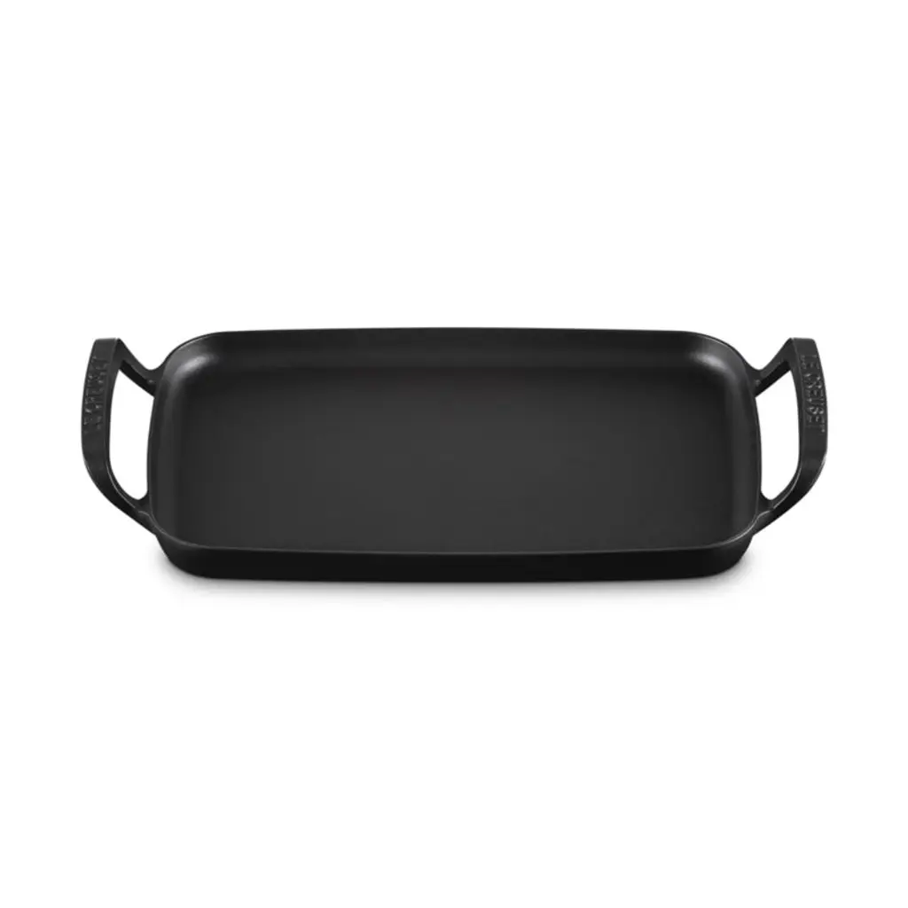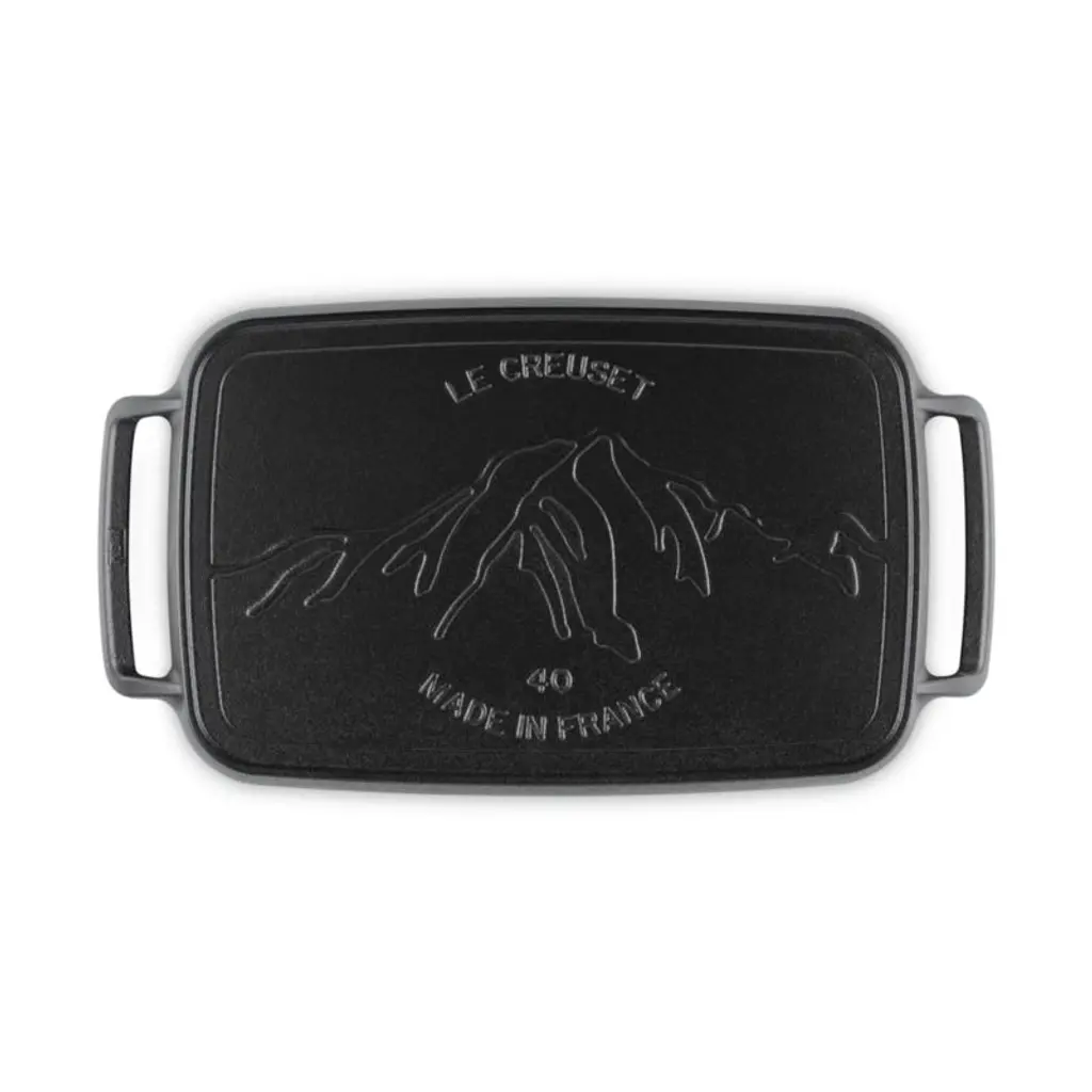 Le Creuset's beloved cast iron cookware takes to the great outdoors in the Alpine collection. Specially designed for cooking over open fires, this griddle also stands up to high heat in ovens, under broilers and on grills. The classic cast iron construction retains and distributes heat impeccably, and the matte black enamel resists chips, cracks and scratches. Over time the rugged finish develops a patina that enhances cooking performance. Raised loop handles make it easy to lift the rectangular pan off the fire or grill while still fitting easily under hoods and lids. Once your smash burgers, fried rice or pancakes and bacon are cooked to perfection, the pan cleans up easily in the dishwasher. The Alpine collection makes a must-have gift for campfire cooking enthusiasts.Revered by both professional chefs and home cooks since its 1925 debut, Le Creuset's classic French cookware is prized for its utilitarian beauty and unsurpassed heat retention.