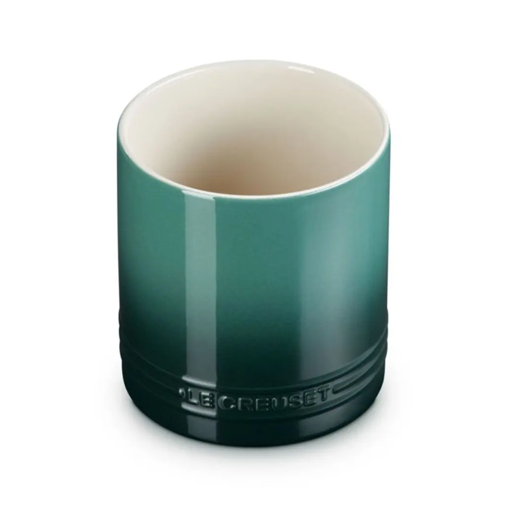 This timeless crock keeps essential utensils right at hand (and coordinates with your favorite Le Creuset cookware). Embossed with the company's iconic ringed design, the stoneware vessel offers plenty of space for all of your go-to cooking tools. Virtually non-stick, Le Creuset's prized porcelain glaze in lush artichoke-inspired green resists cracking, crazing, chipping, scratching and staining so the crock always looks its best.