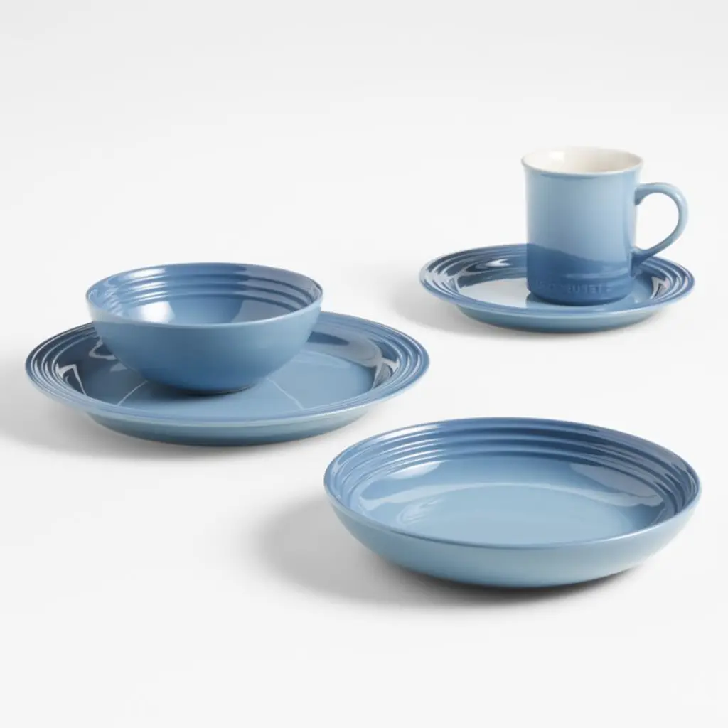 Known for its chef-inspired enamel cookware, Le Creuset introduces a premium stoneware dinnerware collection. The coupe-shaped bowls in this four-piece set are crafted with the same creamy glaze, graduated color and concentric-ridge detailing found in the celebrated cookware. Non-reactive and chip-, scratch- and stain-resistant, the durable bowls come in an exclusive, gorgeous shade of chambray blue that's as casual and chic as your favorite pair of jeans.