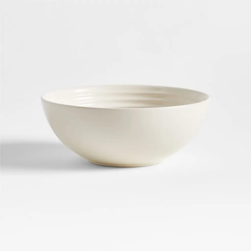 Known for its chef-inspired enamel cookware, Le Creuset introduces a premium stoneware dinnerware collection. The coupe-shaped bowls in this four-piece set are crafted with the same durable glaze and concentric-ridge detailing found in the celebrated cookware. Non-reactive and chip-, scratch- and stain-resistant, the classic, cream-colored cereal bowls make everyday meals a special occasion.