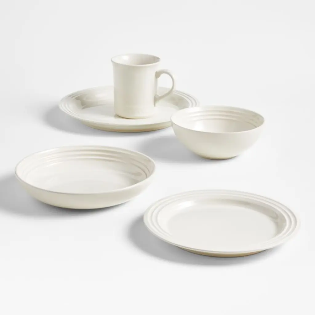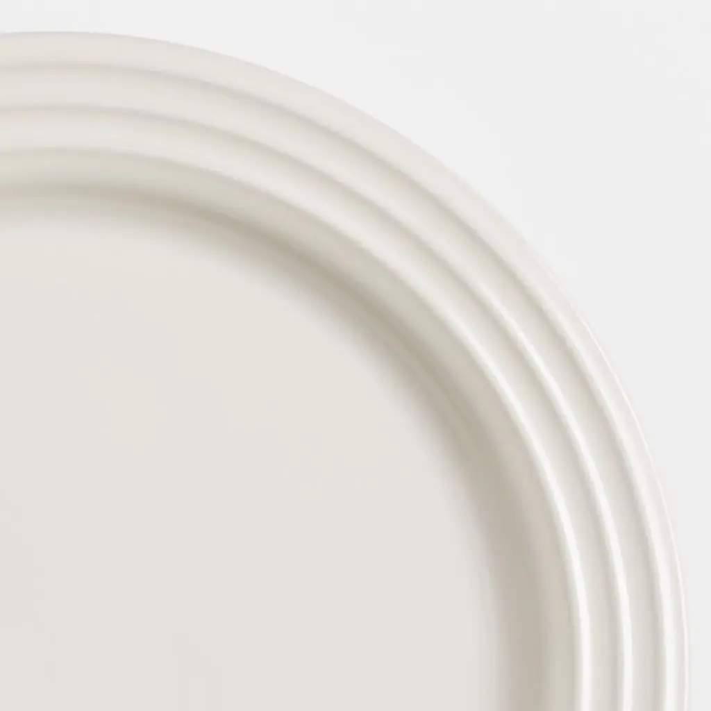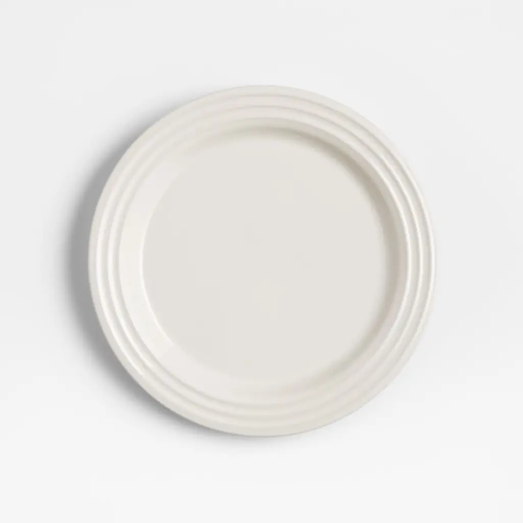 Known for its chef-inspired enamel cookware, Le Creuset introduces a premium stoneware dinnerware collection. The wide-rimmed salad plates in this four-piece set are crafted with the same durable glaze and concentric-ridge detailing found in the celebrated cookware. Non-reactive and chip-, scratch- and stain-resistant, the classic, cream-colored plates make everyday meals a special occasion.