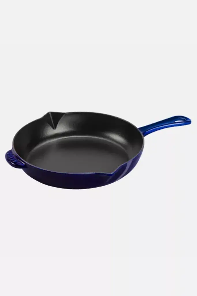 Curated for us exclusively, this gorgeous shade of blue is as casual and chic as your favorite pair of jeans. The chambray blue enamel coating ensures that the cast iron skillet is impervious to acid, alkali, odors and stains. With a non-reactive cooking surface that requires no seasoning, the skillet is your go-to pan for frying, sauteing and searing. The display-worthy skillet goes from oven to any type of stovetop to table for a classic presentation.Revered by both professional chefs and home cooks since its 1925 debut, Le Creuset's classic French cookware is prized for its utilitarian beauty and unsurpassed heat retention.