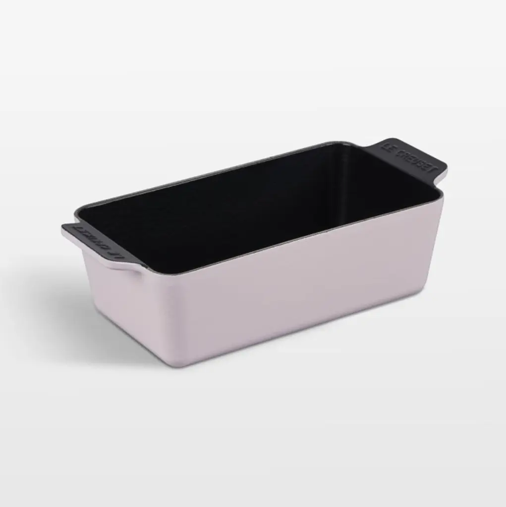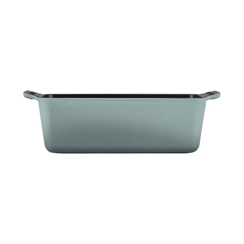 Crafted of Le Creuset's legendary cast iron, this loaf pan bakes cakes, quick breads, lasagna and more with golden, crispy crusts. Enamel in a grey-green hue inspired by sea salt coats the outside of the straight-sided baker, contrasting boldly with the black satin interior that will develop a nearly non-stick patina. Going from stovetop to oven to table, this classic loaf pan serves sweet or savory baked goods then cleans up easily in the dishwasher.