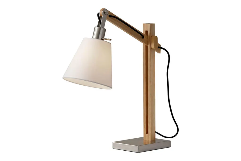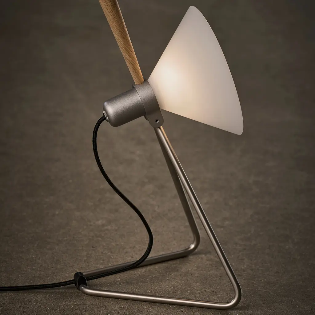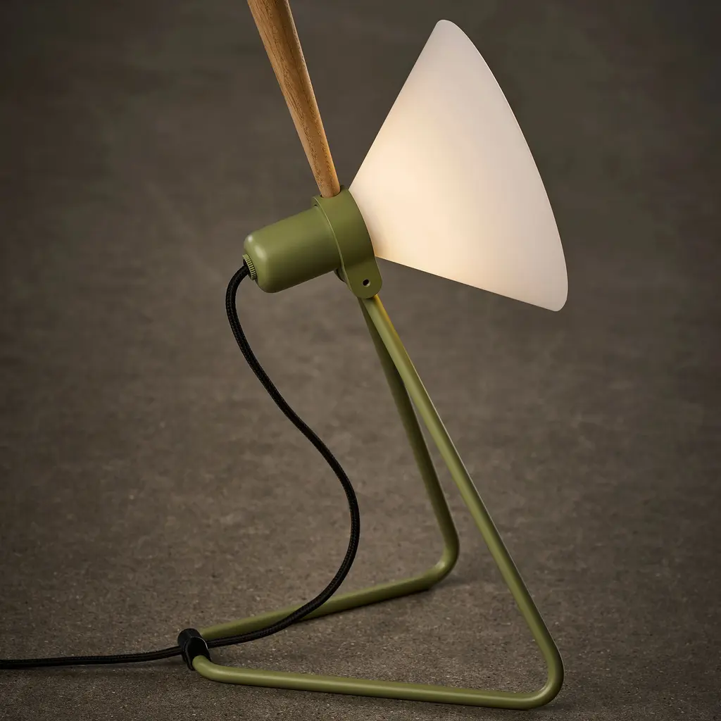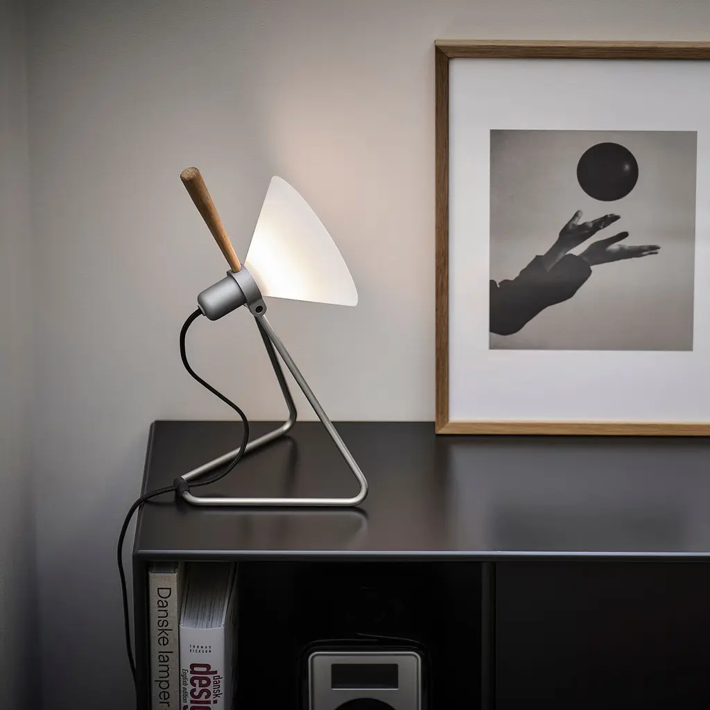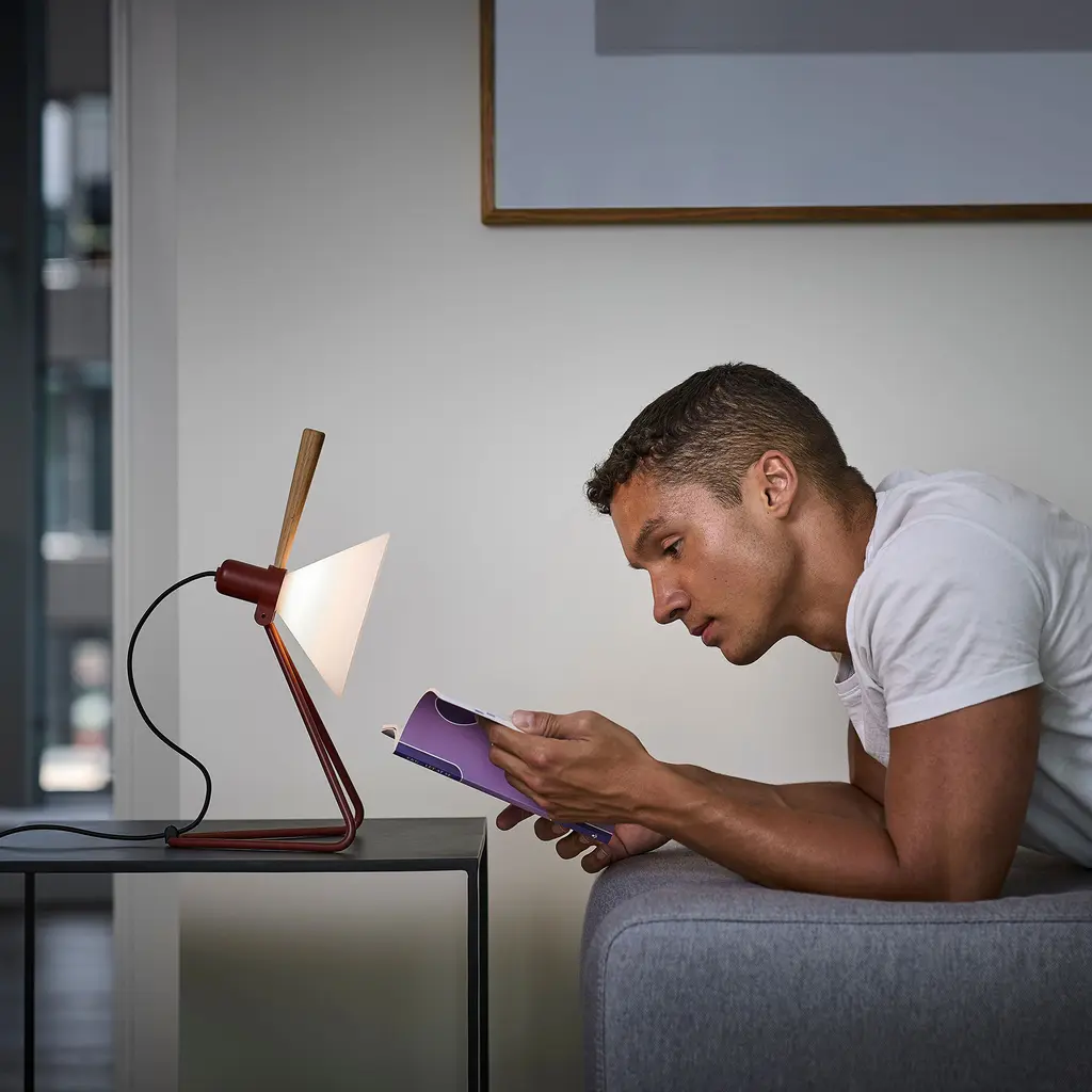Lighting design that easily steals the spotlight, Le Klint’s Spot Wall/Table Lamp features an angled base and a tilting head which you can control with an oak handle. Designed by Pascal Hien with both style and flexibility in mind, this modern lamp can be used on a table or on a wall. The angular support gently tilts the lamp backwards, while the warm wood handle moves the shade, offering the perfect solution to brighten a specific spot in a room. High-quality and durable, the Spot lamp is made with a stainless steel support and a solid oak handle. While the wood comes in light or smoked versions, the steel base comes in Black, Silver, Olive Green, and Oxide Red finishes. A hook for wall mounting is also included to help you easily switch the design from a table, desk or floor lamp into a wall light, as needed.