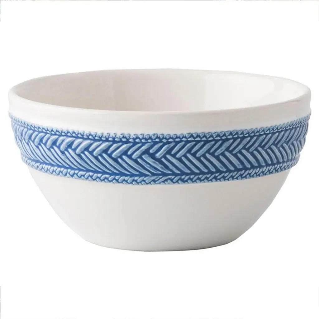 We worked closely with Juliska to perfect just the right shade of rich, dramatic blue for the Bloomingdale's exclusive Le Panier Blue collection. Textural, hand-painted braid details and weighty, substantial stoneware give each piece enduring warmth and nautical-inspired style.