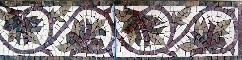 A beautiful Leafs design mosaic boarder stone art. Fully hand made from natural stones and hand cut tiles. Sq.Ft. : 0.48Marble Count : 540Backing: Your Mosaic comes on a mesh Backing Mosaic Uses: Floors, Walls both Indoor or Outdoor as well as wet placesTechnique: Handmade