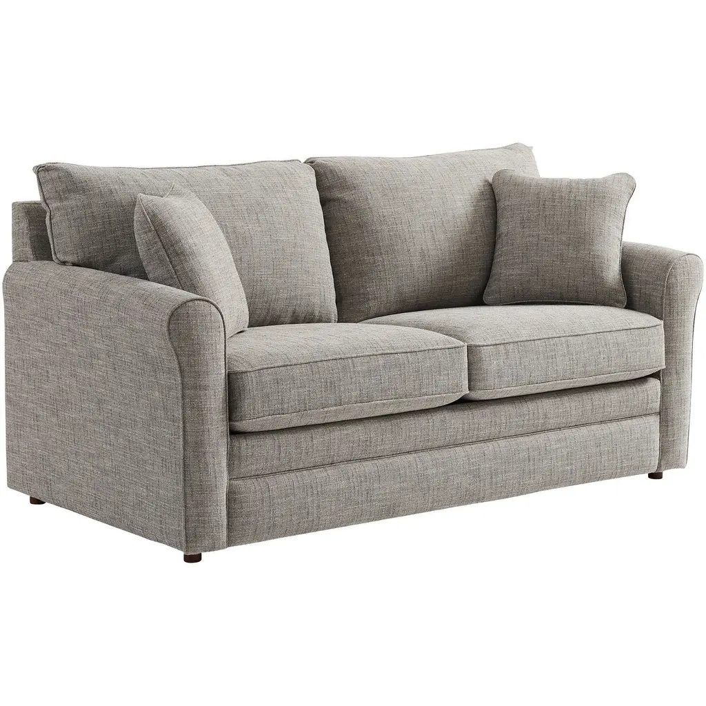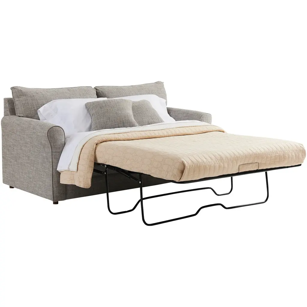 Turn any room into a stylish and functional guest room with the Leah Queen Sleep Sofa. Its sleek profile is perfect for smaller spaces, yet it opens up to become a super comfortable Queen bed, complete with a Supreme Comfort™ quilted innerspring mattress measuring 5.5" in thickness. By day, this sleeper is a true beauty too, with curving rolled arms, welt trim, and patented ComfortCore® cushions that provide optimum support for a long or short sit. Includes one 18" accent pillows.