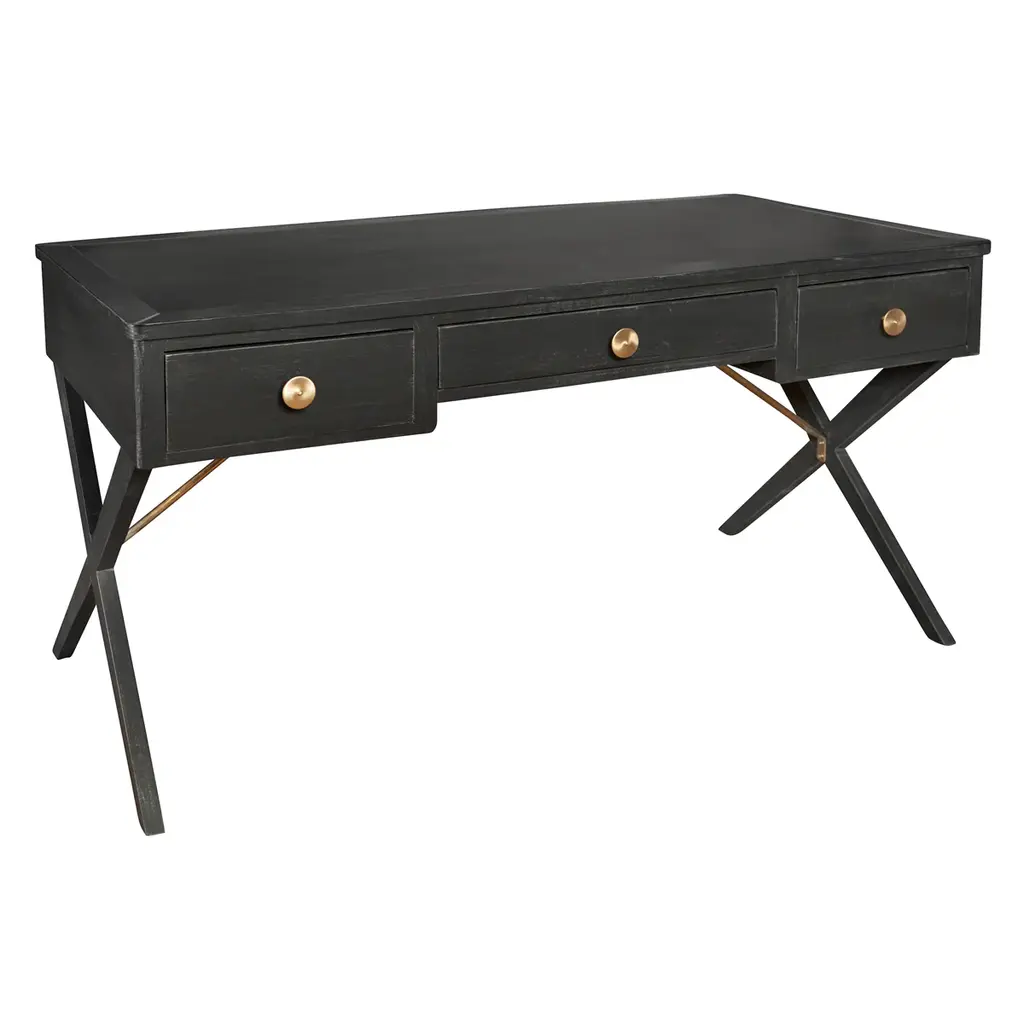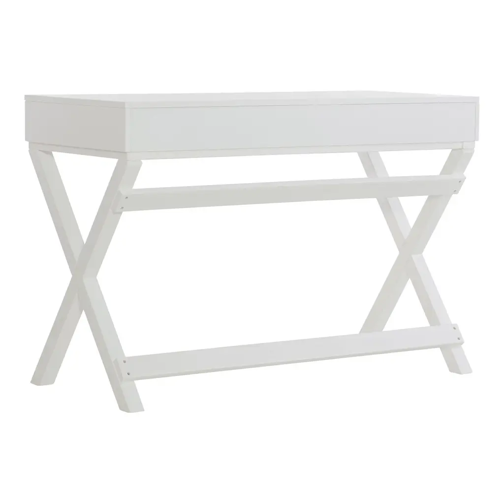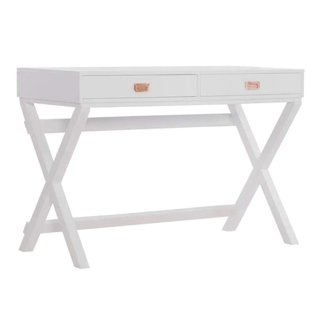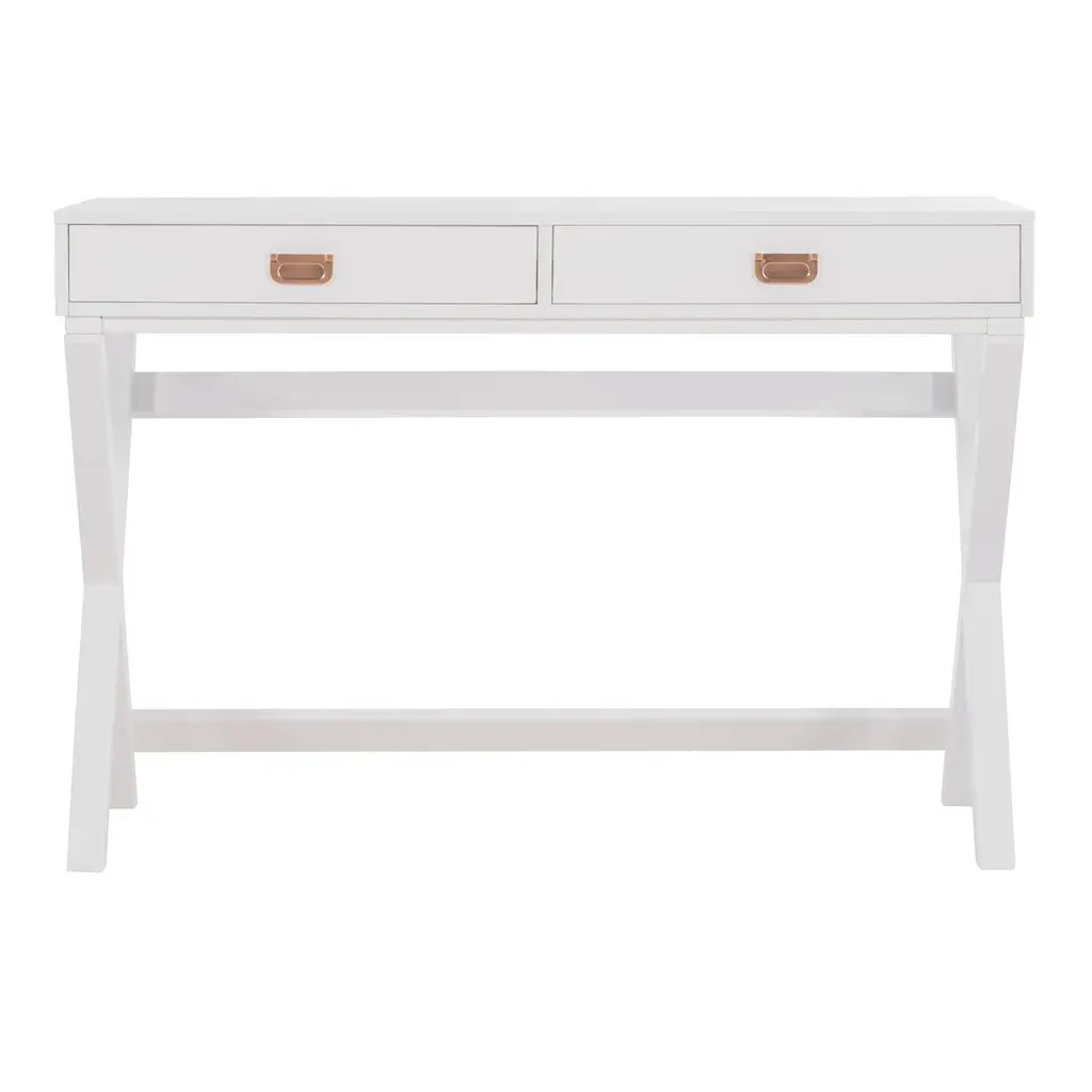 Inspired by British campaign desks, originally designed to be portable yet durable and taken on military campaigns, this modern-day version has a beautiful painted finish and eye-catching metal hardware. Available in black with silver hardware or white with rose-gold, it features the trademark simple outline, sturdy X-crossed legs and ample storage space that will keep your home office shipshape.