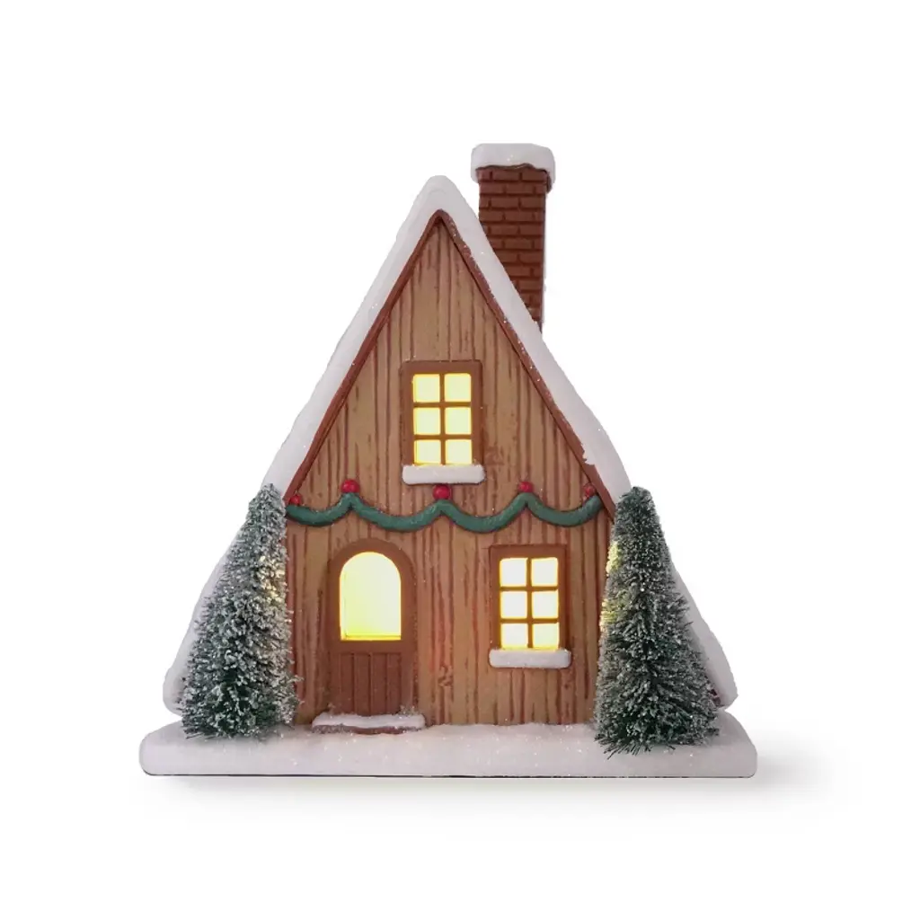 Add a touch of charm to your indoor decor with the LED Cabin Houses A Frame from Bullseye's Playground. Crafted from durable plastic, this decorative piece stands at 6.25 inches tall and features a warm brown hue that complements any setting. Perfect for creating a cozy holiday scene, its compact size makes it easy to display on mantels or tabletops, adding a delightful accent to your home.